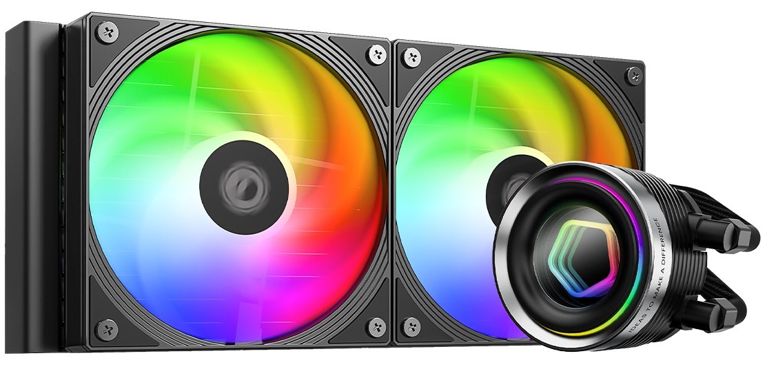 Жидкостная система охлаждения ID-Cooling FX240 INF совместима с сокетами Intel и AMD. Устройство рассеивает мощность до 300 Вт. Показатель достаточен для безопасной и эффективной работы процессора экстра-класса. Система охлаждения подходит для оснащения мощного игрового ПК или высокопроизводительной рабочей станции. Эффективность устройства обеспечивается мощным мотором помпы, высокой плотностью ребер радиатора и двумя 120-миллиметровыми вентиляторами. Их скорость вращения регулируется автоматически, в диапазоне от 300 до 2000 оборотов в минуту. Максимальный уровень шума вентиляторов – 27.2 дБ. Система работает почти бесшумно при минимальной нагрузке на процессор.