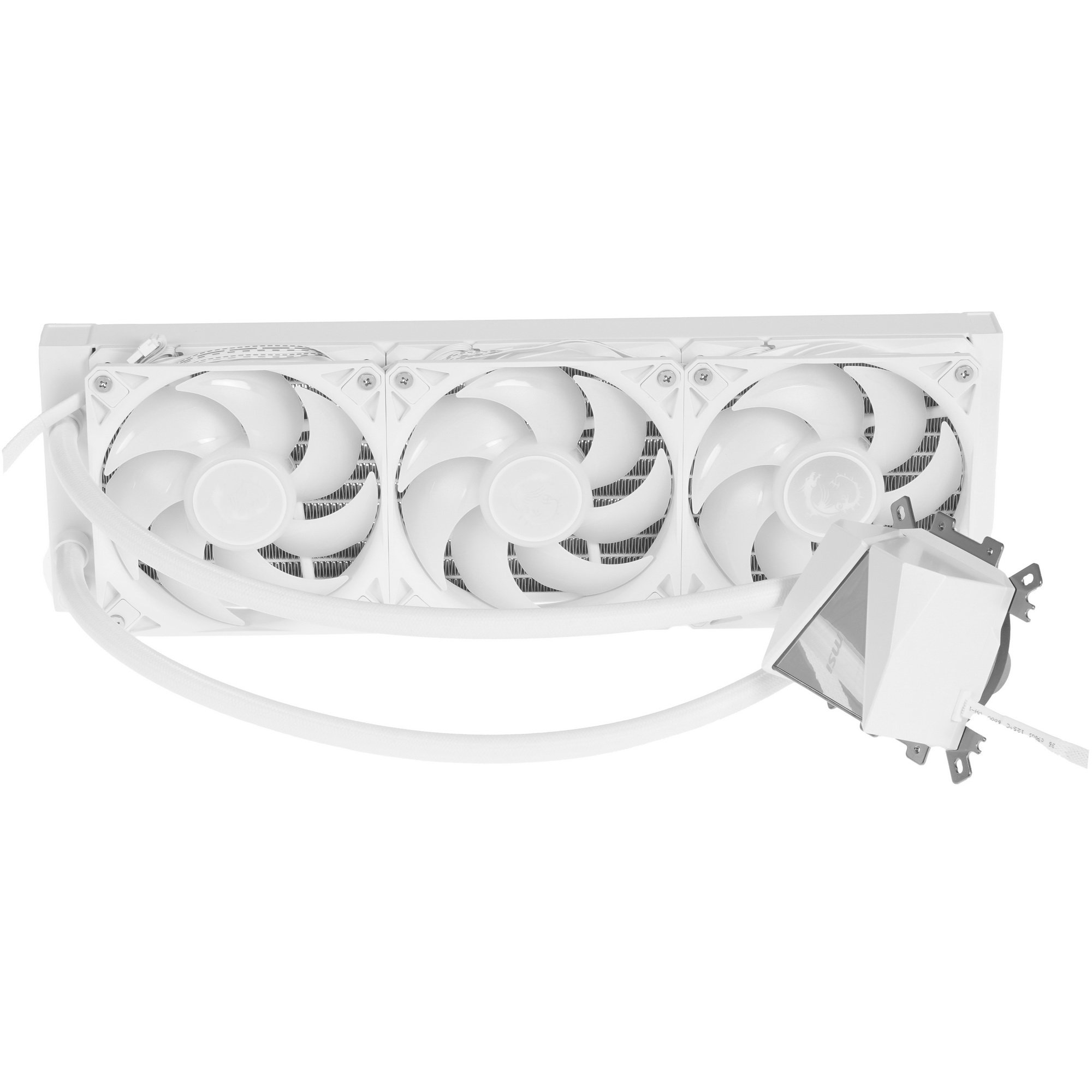 Система охлаждения MSI MAG CORELIQUID I360 с белым цветовым оформлением является универсальным решением для центрального процессора с сокетом AM5, LGA 1150, LGA 1156, LGA 1700, LGA 1851 или другим разъемом подключения. Задачей устройства, состоящего из медного водоблока и радиатора из алюминия, является отвод тепла от ЦПУ и его рассеивание. Модули соединены гибкими трубками, для циркуляции жидкого хладагента.