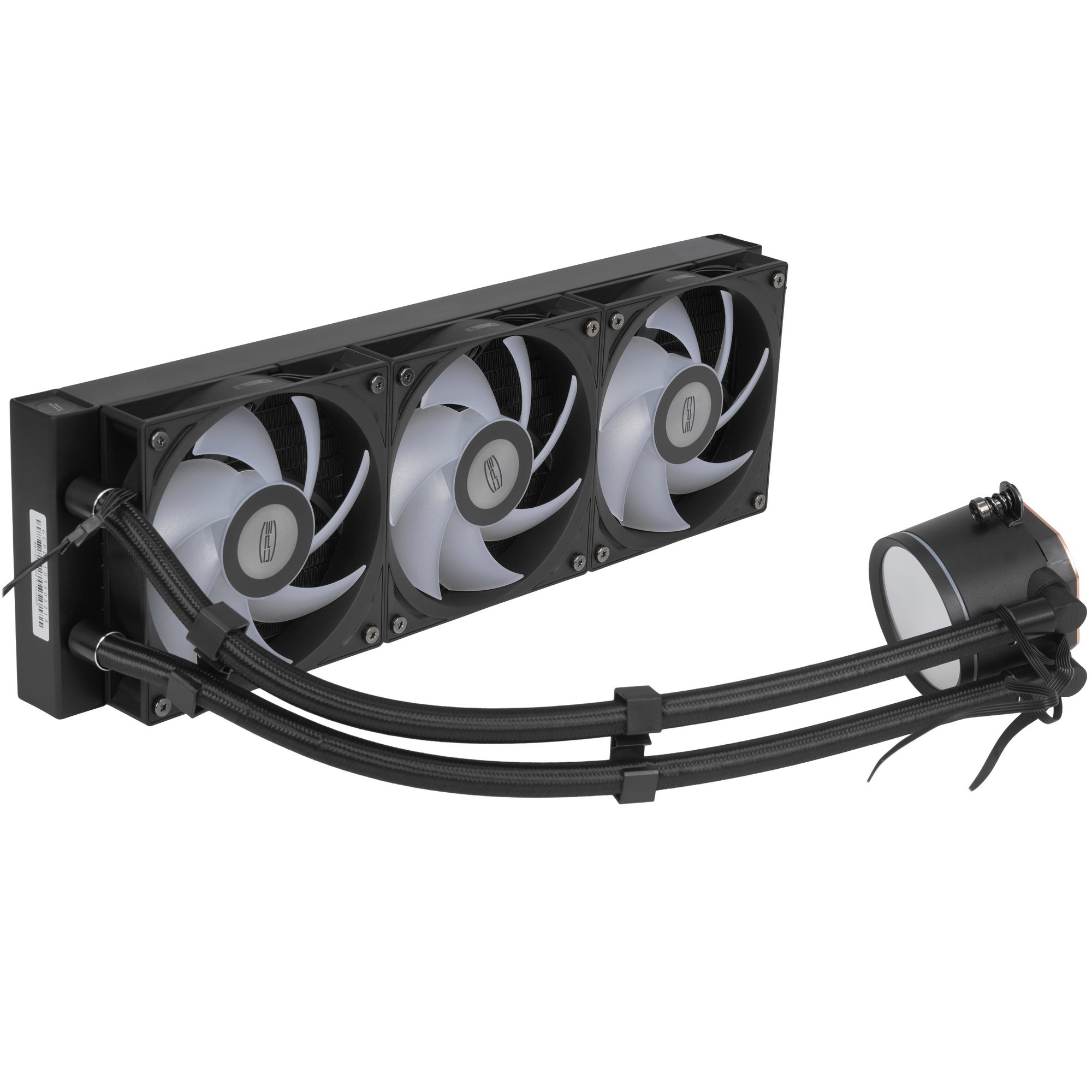 Система охлаждения PCCooler DA360 Pro ARGb Digital BK (300W, 360мм, LED temp., Black, ARGb/ Fans: 3x120мм, 75.8CFM, 33.7dBA, 2200RPM/ Pump height 57мм, 28dBA, 3000RPM, Rad thickness 27мм/ S: 1851, 1700, 1200, 20XX, 115X, AM5, AM4)