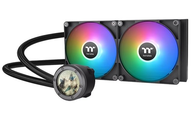 На радиаторе СЖО для ЦПУ Thermaltake TH280 V2 Ultra ARGB Sync расположены два вентилятора размером 140 мм, которые вращаются с частотой 500-1800 об/мин и рассеивают тепло с поверхности радиатора. Особенностью модели является наличие в корпусе водоблоке небольшого ЖК-дисплея. На нем отображаются текущая температура процессора, скорость вращения кулеров и другие полезные данные.