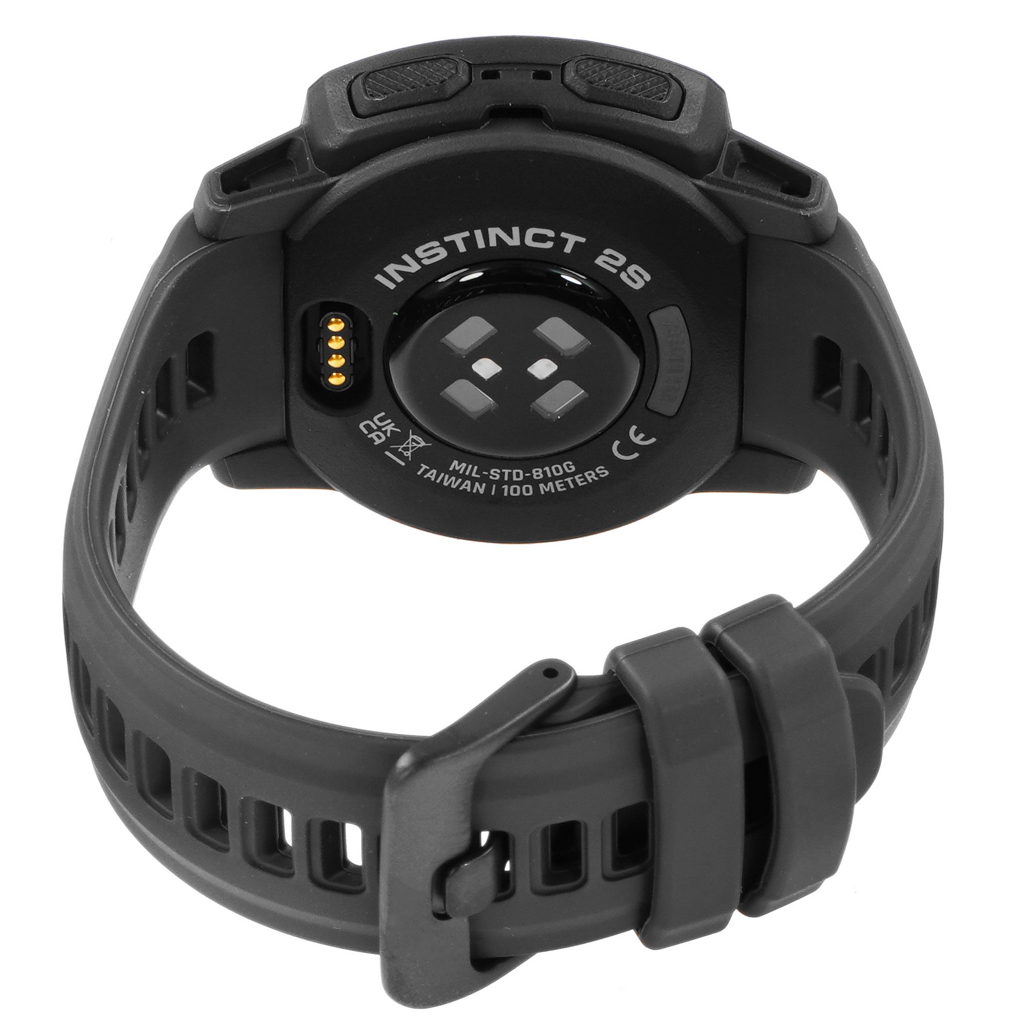 Смарт-часы Garmin Instinct 2S с лаконичным черным дизайном удобно облегают запястье, стильно выглядят и обладают широким функционалом. Круглый дисплей с прочным защитным стеклом не боится появления царапин и потертостей. Съемный ремешок упрощает процесс замены после износа. Емкая АКБ с удобным режимом экономии энергии выдерживает около 1 месяца активной работы.