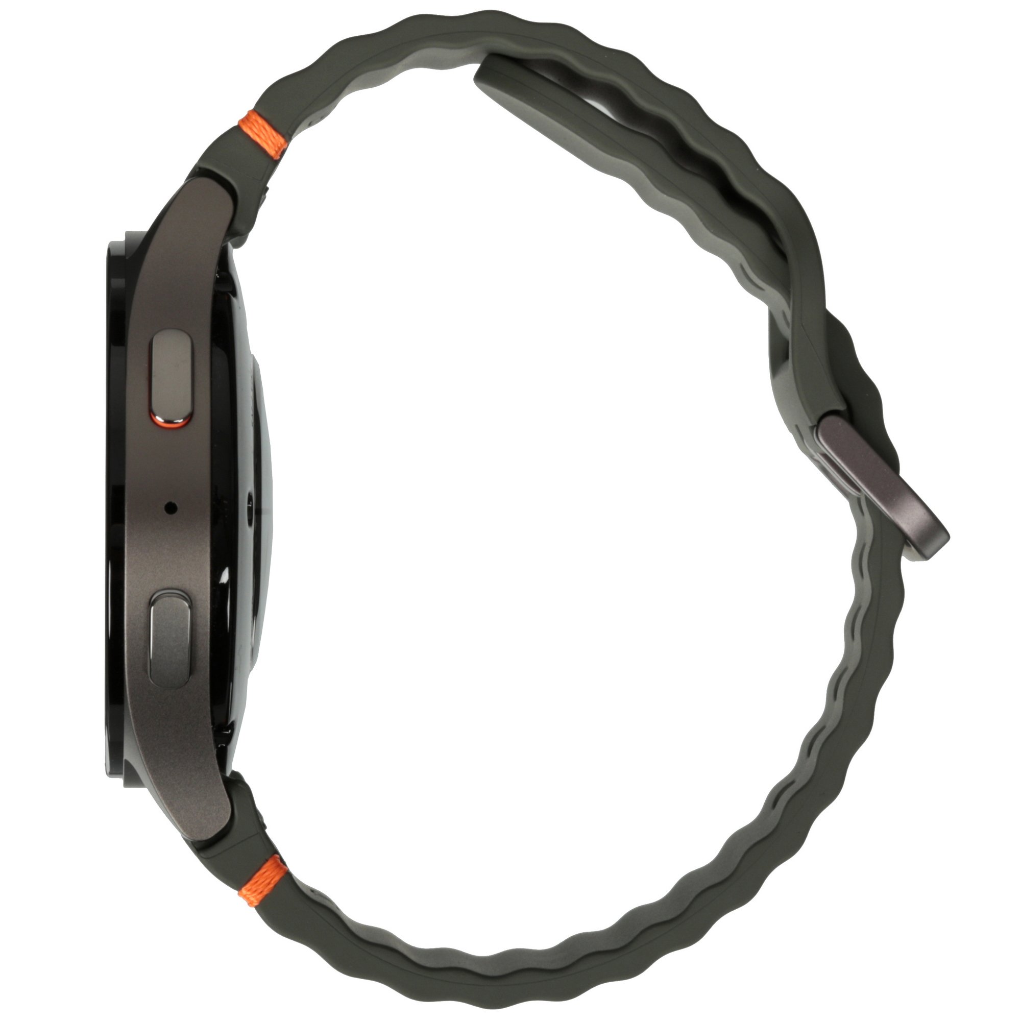 Подчеркните свой стиль с помощью Galaxy Watch7. Стильное сочетание плавных линий корпуса и контрастных акцентов элегантно смотрится на запястье, а волнообразный дизайн ремешка демонстрирует готовность к тренировкам.