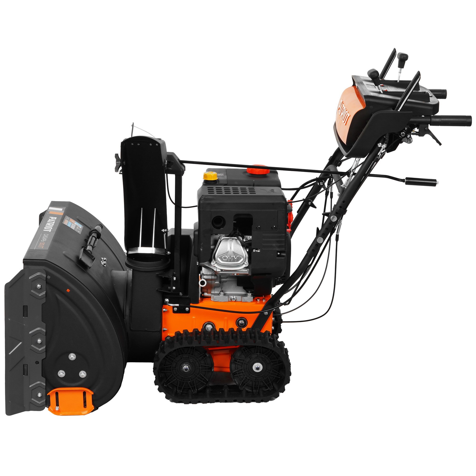 Благодаря гусеницам снегоуборщик бензиновый ПАТРИОТ СИБИРЬ 130 CЕТ легко проедет по рыхлому снегу, через бордюры и подобные препятствия. Самоходная машина оснащена широким ковшом 76x53 см с защитой от деформаций и двухступенчатой системой зазубренных шнеков. Яркие фары позволят выполнять уборку в любое время суток, а подогрев ручек сделает работу более комфортной.