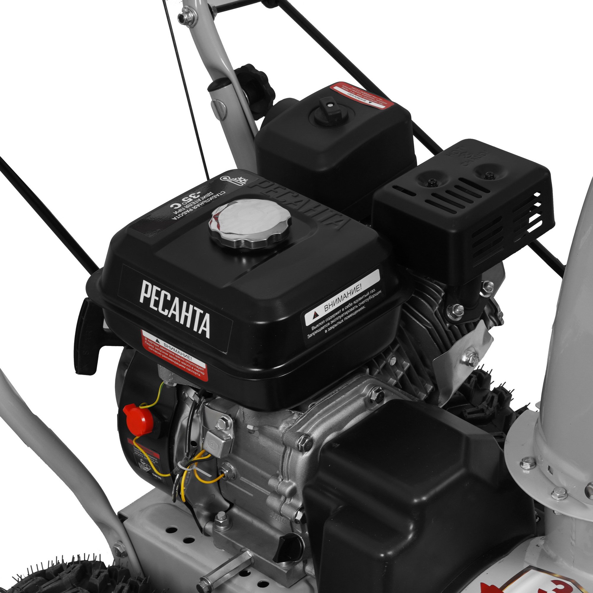 Топливный бак вмещает 3.6 л бензина и гарантирует продолжительное время непрерывной работы. Благодаря широким колесам с агрессивным протектором снегоуборщик отличается хорошим сцеплением даже с промерзшей поверхностью. Поршневая группа с хромированным покрытием и защита от деформации ковша повышают надежность в эксплуатации Ресанта СБ 4100.