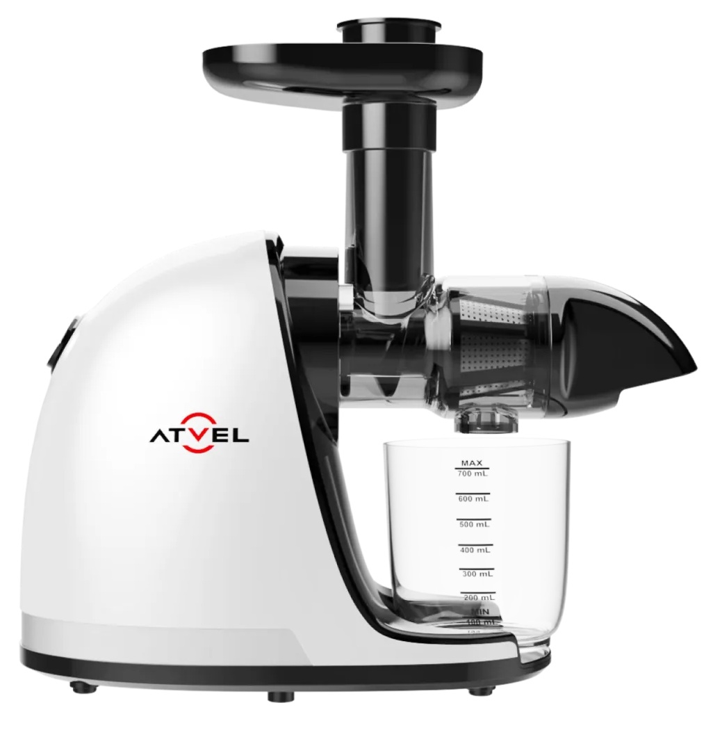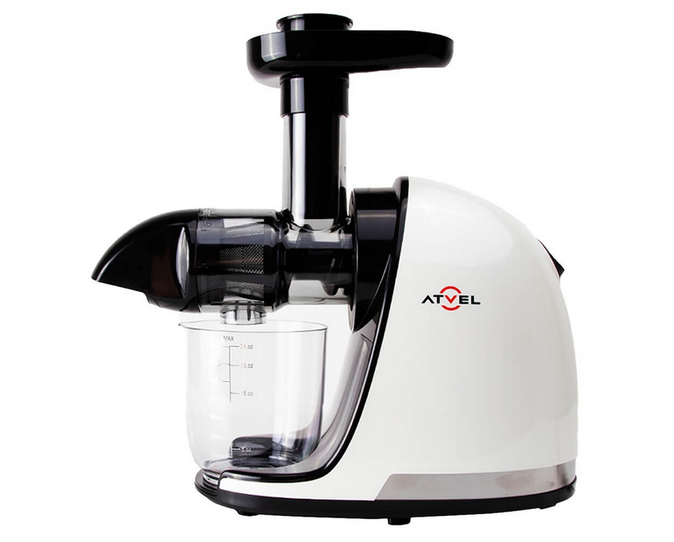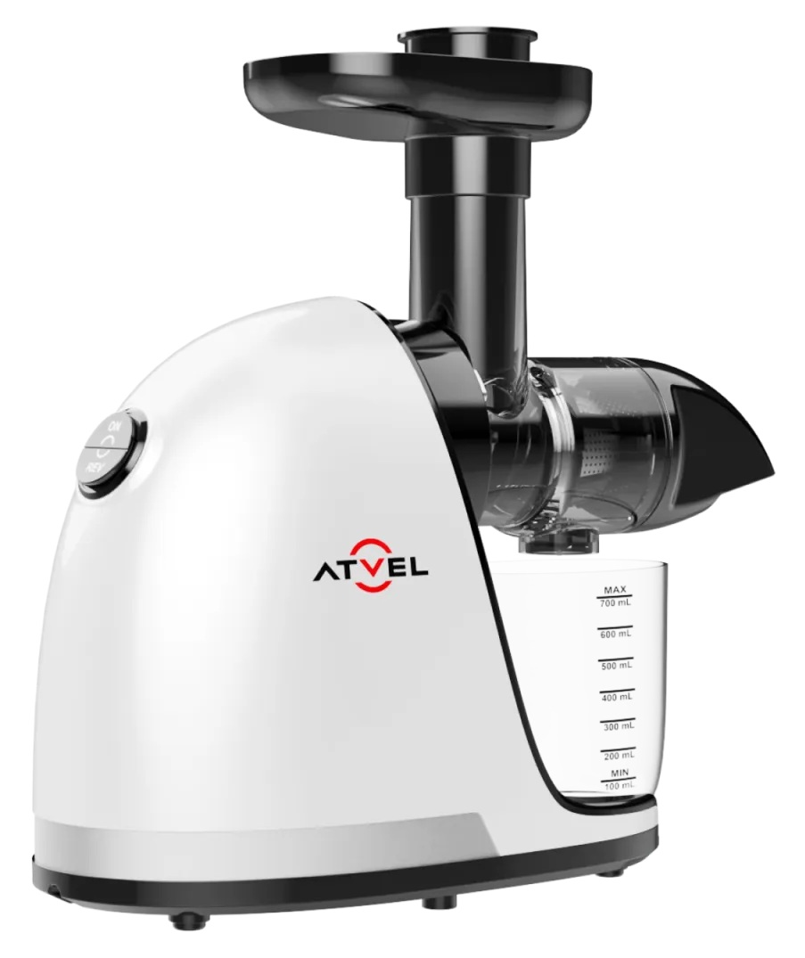 Соковыжималка электрическая Atvel PowerTwist J3 оснащена действующими в связке двигателем постоянного тока и редуктором червячного типа. Поэтому модель работает с эффективностью устройств мощностью 1500 Вт при потреблении всего 150 Вт. Соковыжималка оснащена простым механическим управлением, реверсом и плавным запуском двигателя. В модели есть системы автовыброса мякоти и прямой подачи сока.