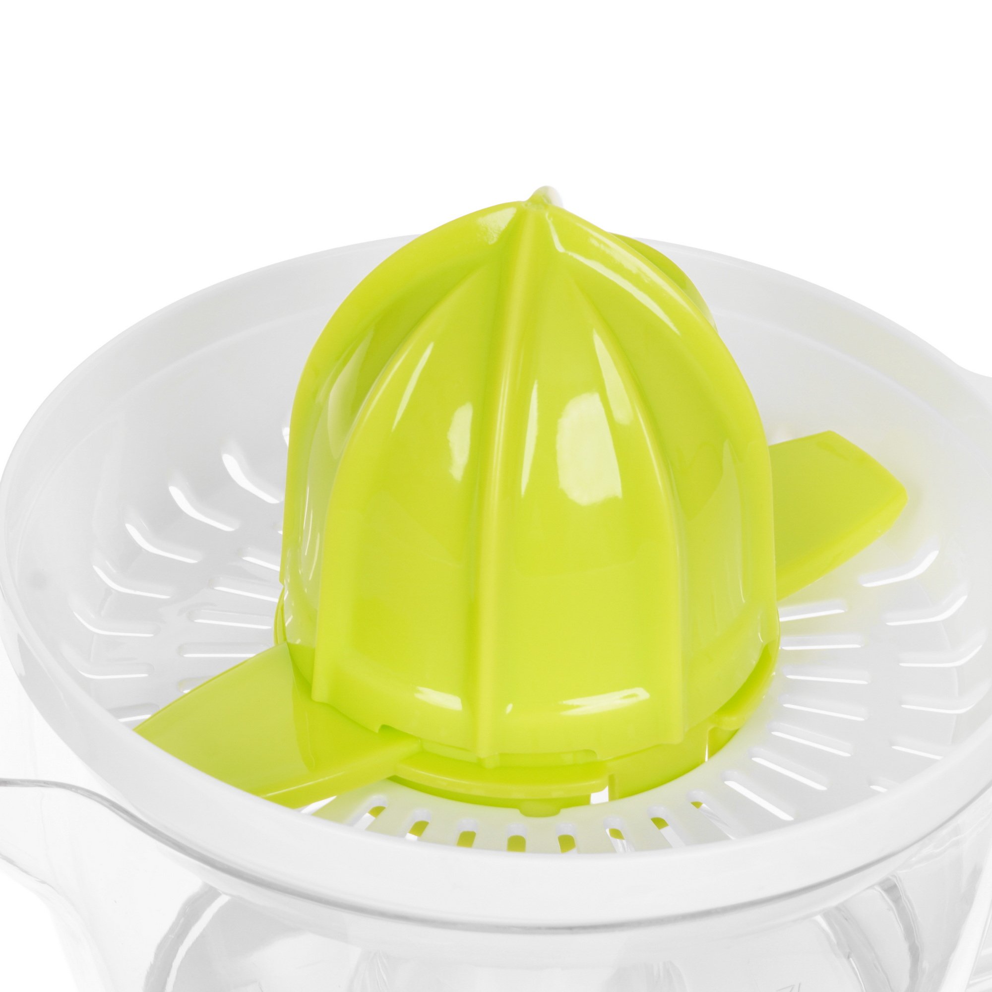 Соковыжималка электрическая Blackton Bt J1110 White белого цвета используется для получения сока из цитрусовых. При мощности двигателя 25 Вт она развивает до 60 об/мин и справится только с мягкими фруктами: апельсинами, грейпфрутами, лимонам, мандаринами. В импульсном режиме устройство работает короткими циклами на максимальной мощности. Это позволит обрабатывать продукты с волокнами и точно контролировать процесс. В емкости на 700 мл поместится 2-3 порции напитка по 250-350 мл.