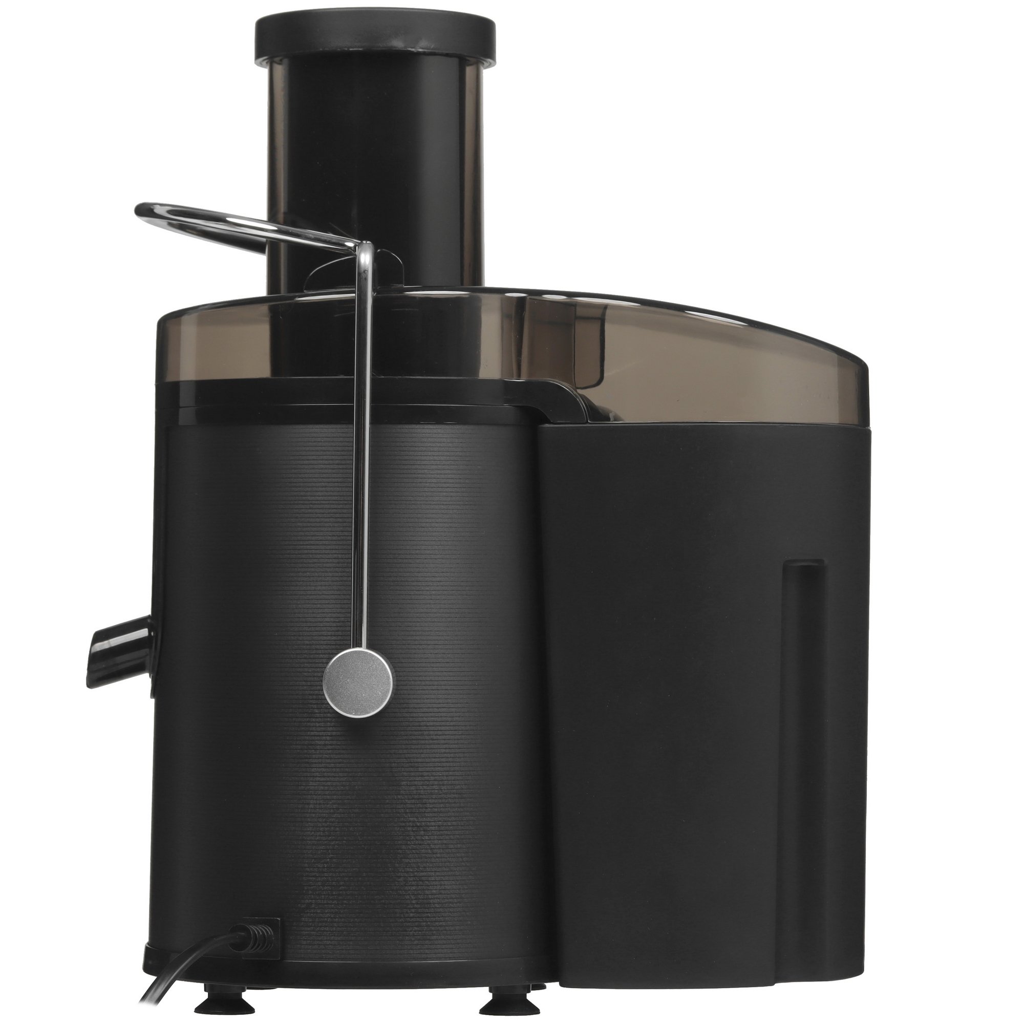 Соковыжималка электрическая BRAYER 1702BR в черном пластиковом корпусе имеет мощность 500 Вт, которой достаточно для отжима сока из мягких и твердых плодов. Конструкцией предусмотрен 0.5-литровый резервуар для сока и контейнер для мякоти объемом 1.6 л. Горловина шириной 65 мм исключает необходимость разрезать плоды на мелкие куски.
