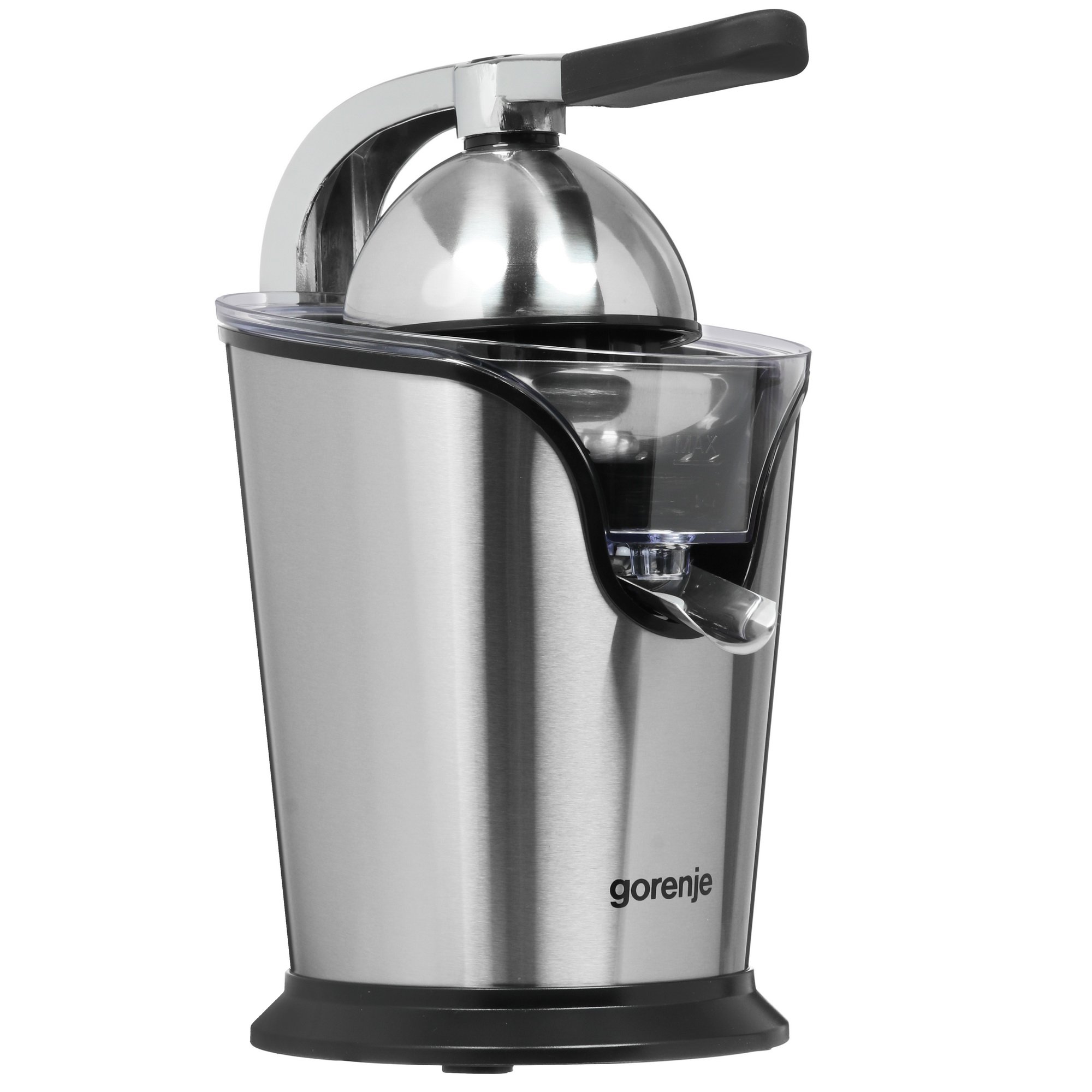 Gorenje CJ100HE поддерживает импульсный режим для уменьшения нагрузки на двигатель. Прибор комплектуется 2 конусообразными насадками для плодов любого размера. Система «Капля-стоп» позволяет повернуть носик в другую сторону и не допустить проливания напитка на кухонные поверхности. Компактное хранение 1.1-метрового сетевого кабеля осуществляется в отдельном отсеке. Прорезиненные ножки гарантируют устойчивое положение устройства в любой плоскости.