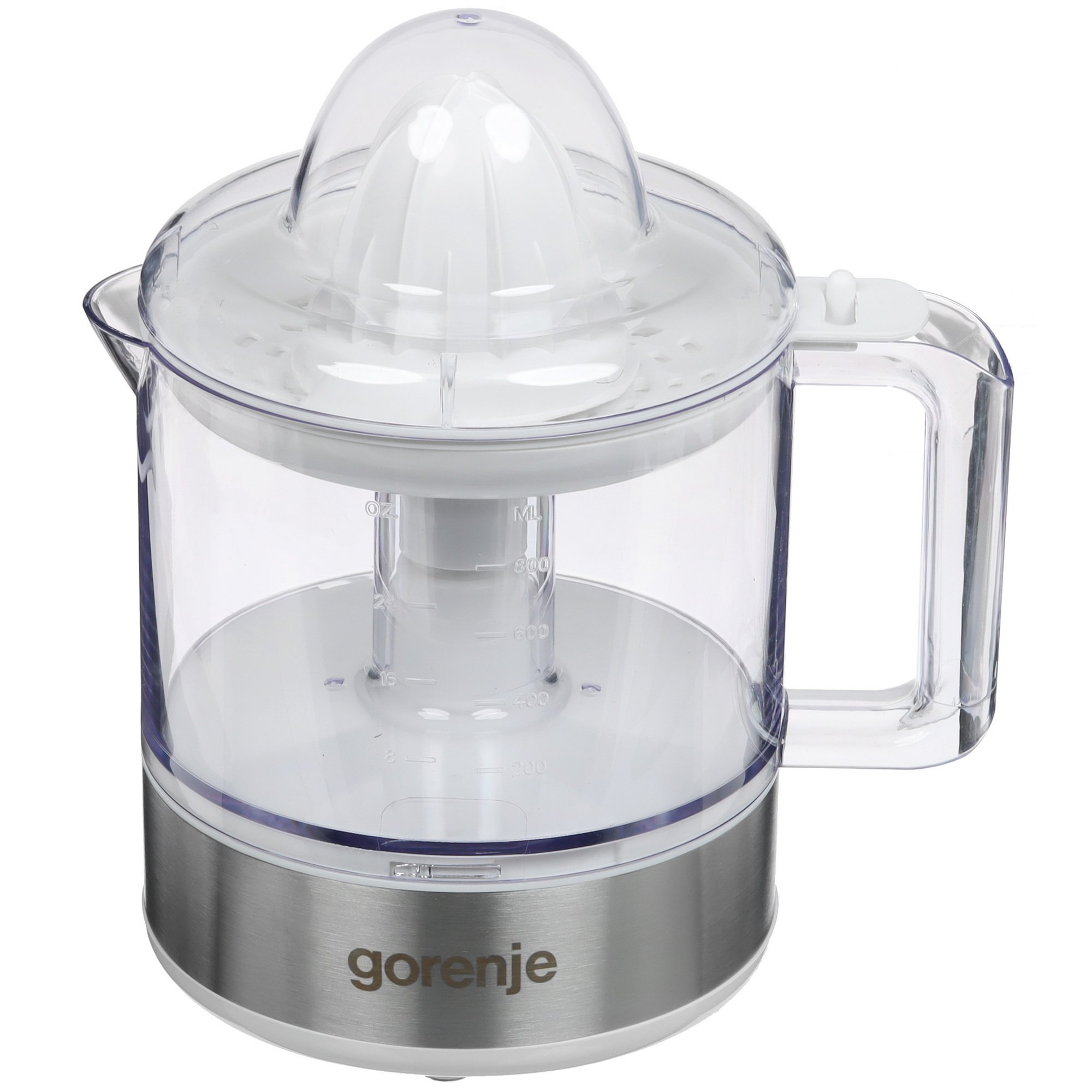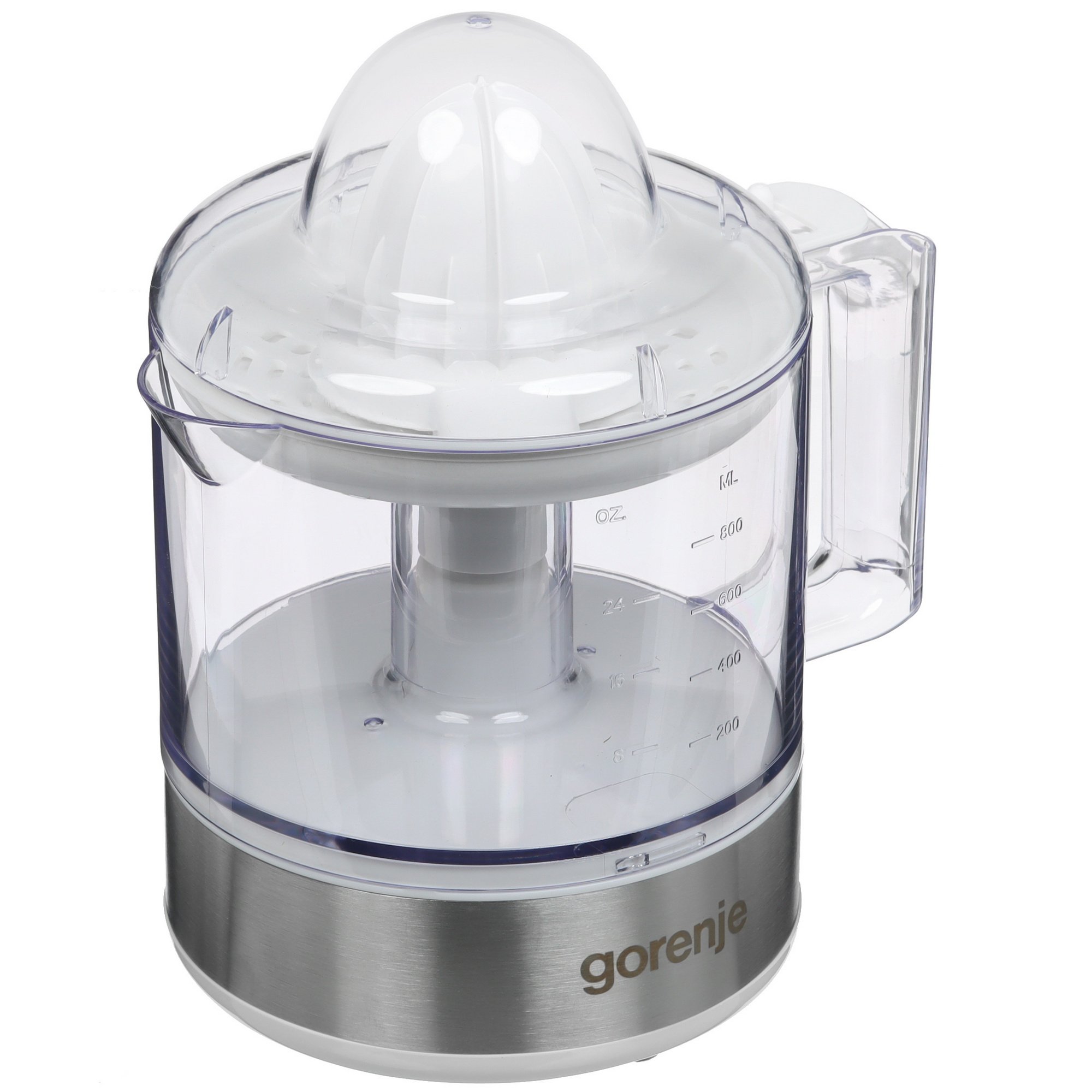 Соковыжималка электрическая Gorenje CJ30E в корпусе из металла и пластика белого цвета предусматривает возможность регулировки количества мякоти. Расположенные в основании ножки обеспечивают устойчивое размещение устройства. Основная чаша дополнена сливным носиком, не допускающим проливания напитка мимо чашки или стакана. В комплекте содержится 2 насадки для цитрусовых.