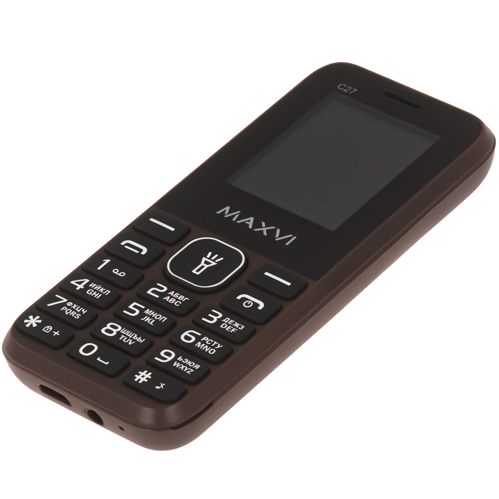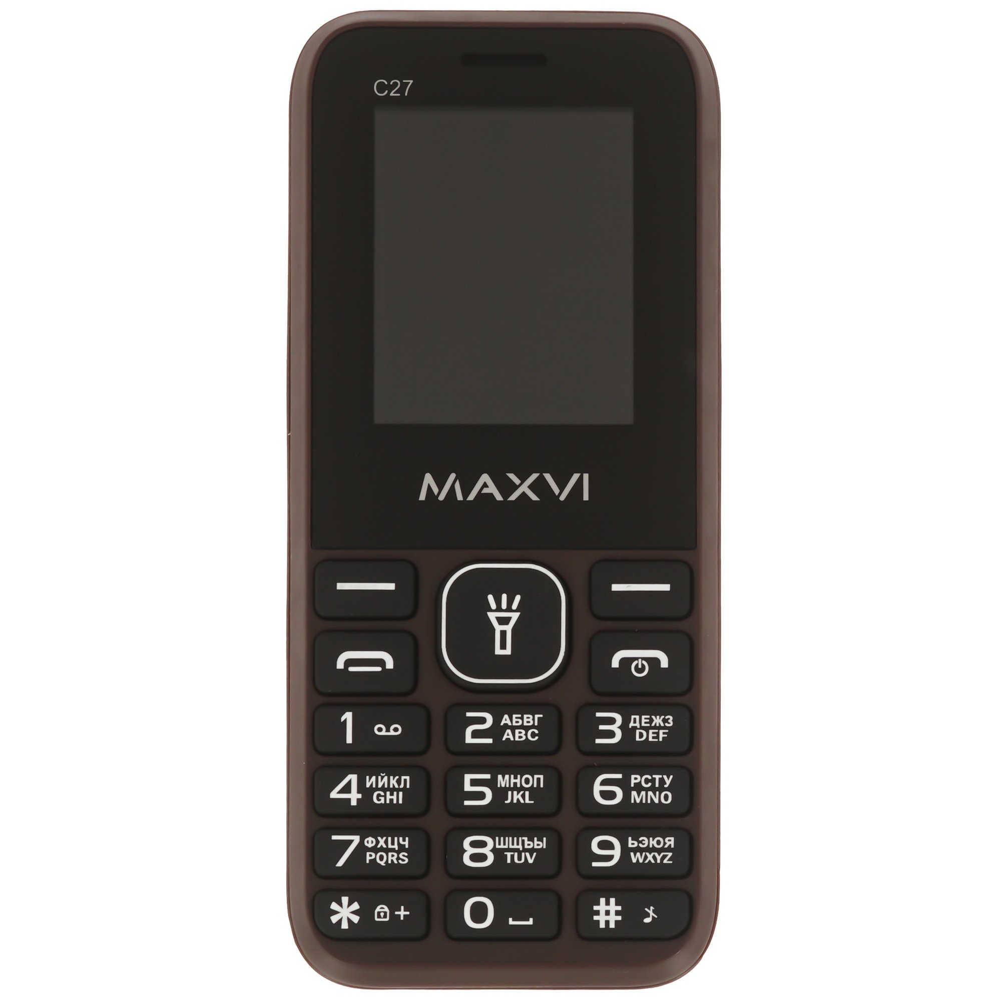 Сотовый телефон Maxvi C27 в корпусе из коричневого и черного пластика имеет основную камеру с разрешением матрицы 0.3 Мп и поддержкой функции «Запись видео». Расширение встроенной памяти осуществляется путем установки карт microSD или microSDHC. Для трансляции данных в разрешении 160x128 пикселей предусмотрен цветной 1.77-дюймовый дисплей.
