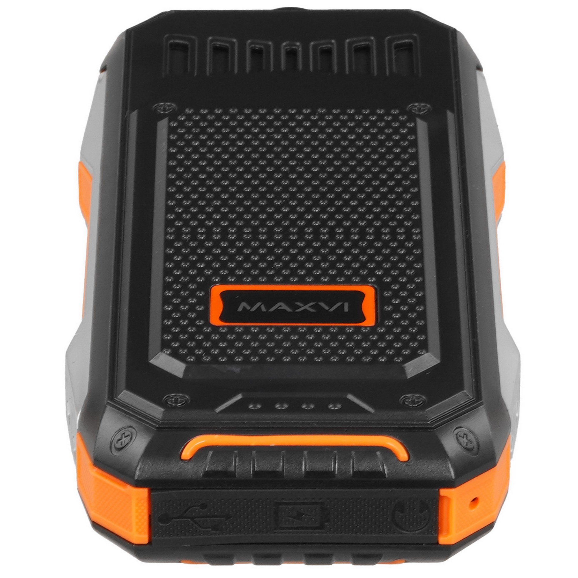 При необходимости сотовый телефон Maxvi T100 выполняет функцию зарядного устройства, которое используется для подзарядки других телефонов. Их подключение осуществляется через разъем microUSB, скрытый в нижней части устройства. Емкости съемного аккумулятора хватает для работы на протяжении 290 ч в режиме ожидания и до 13 ч в режиме разговора. Наличие в конструкции телефона FM-радиоприемника позволит слушать любимые радиостанции в любом месте. Дополнительно телефон оснащен ярким фонариком.