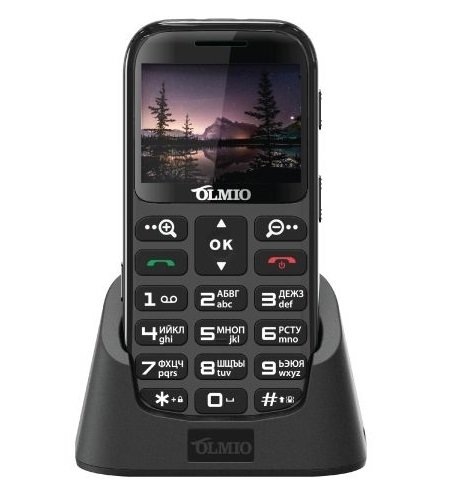 Сотовый телефон Olmio C37 для двух SIM-карт представлен в моноблочном корпусе с большими кнопками и 2.4-дюймовым экраном. Интуитивно понятное меню не вызывает сложностей в изучении и поиске нужной функции. Телефон оснащен громким динамиком, кнопкой SOS, ярким фонариком и съемным аккумулятором с зарядкой через microUSB. Есть слот для microSD-карты объемом до 32 ГБ.