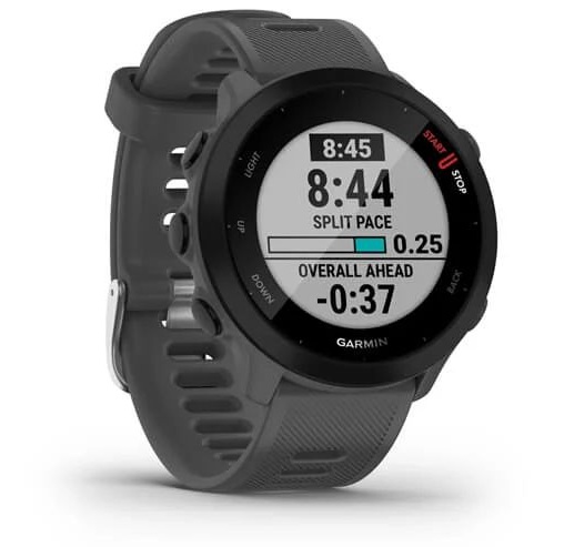 Спортивные часы Garmin Forerunner 55 созданы для любителей спорта. Они помогают отслеживать показатели физической активности и достигать спортивных целей. Часы выполнены в защищенном пластиковом корпусе и оснащены эргономичным ремешком из силикона. В часах установлен дисплей 1.04 дюйма LCD, который обеспечивает воспроизведение четкой и красочной картинки. В Garmin Forerunner 55 реализованы система навигации GPS и технология Bluetooth. Литий-ионный аккумулятор гарантирует до 2-х недель автономности спортивных часов.
