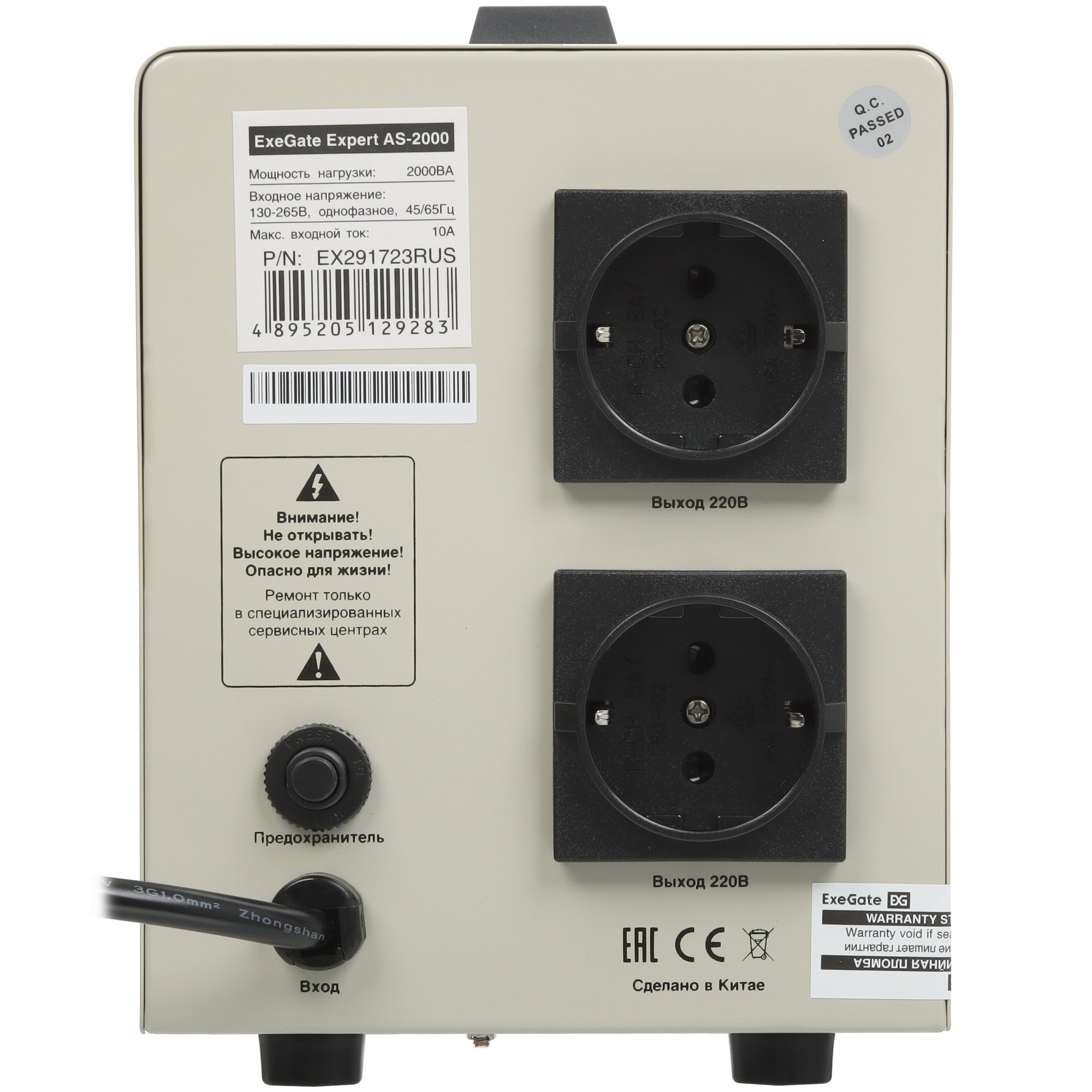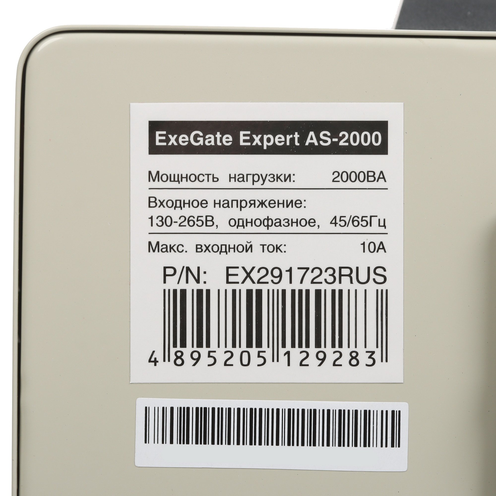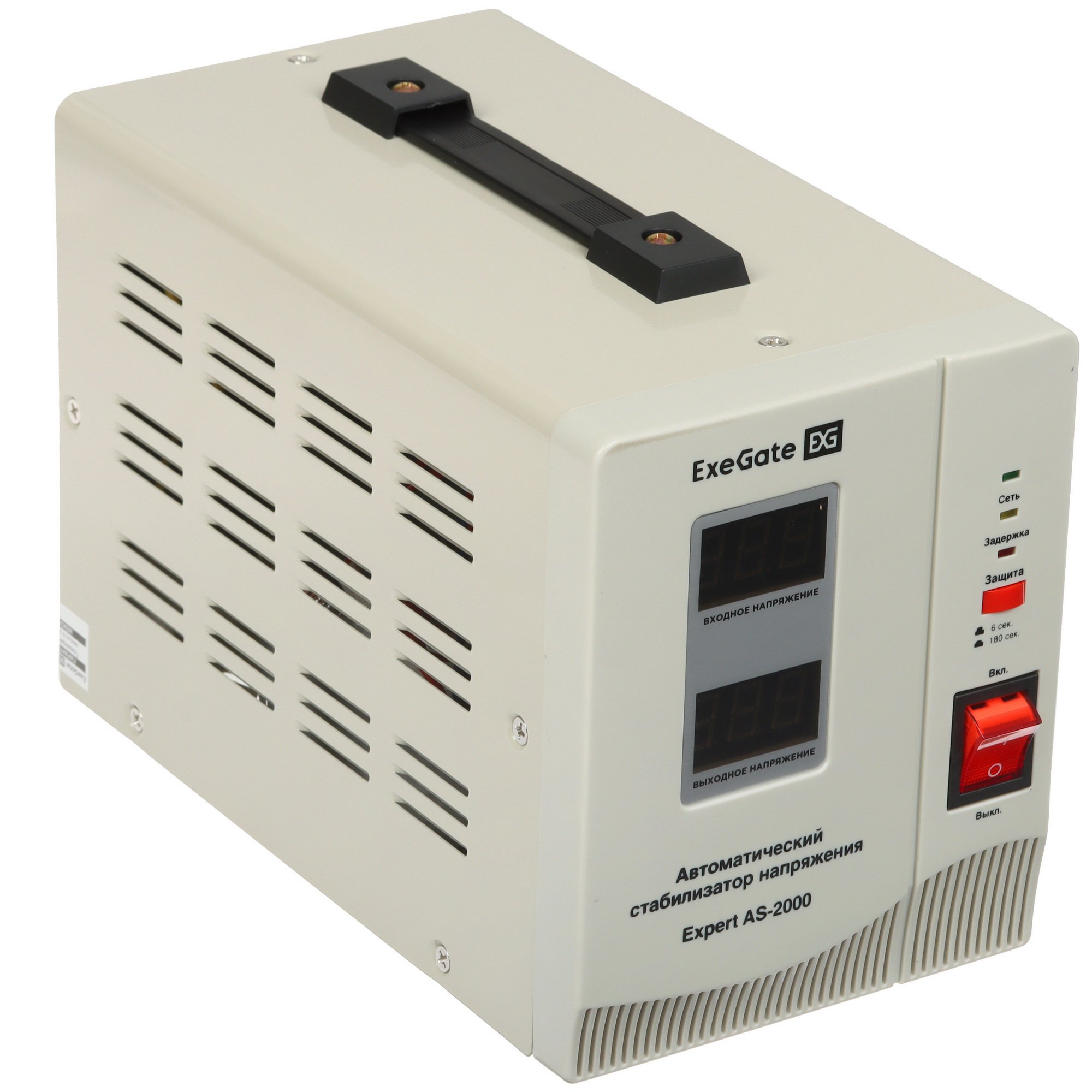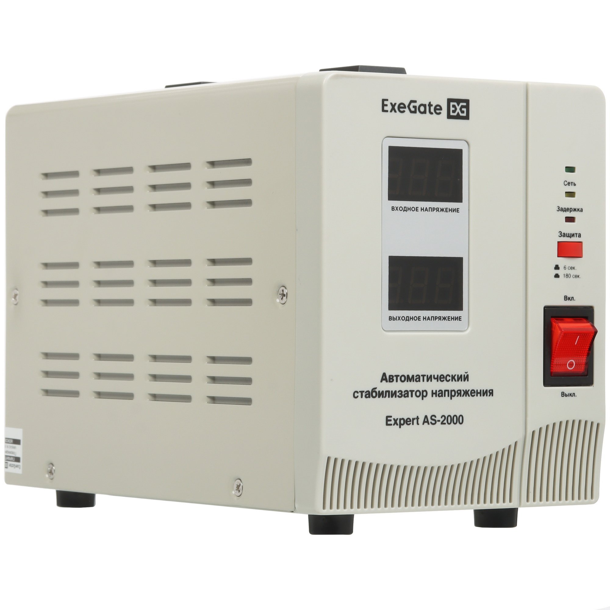 Стабилизатор напряжения ExeGate Expert AS-2000 (2000ВА, вход 140...260В, двойная цифр. индикация вход/вых. напряжения, выход 220В±8%, КПД 98%, 5 уровней защиты, задержка, метал. корпус, 2 евророзетки, RTL)