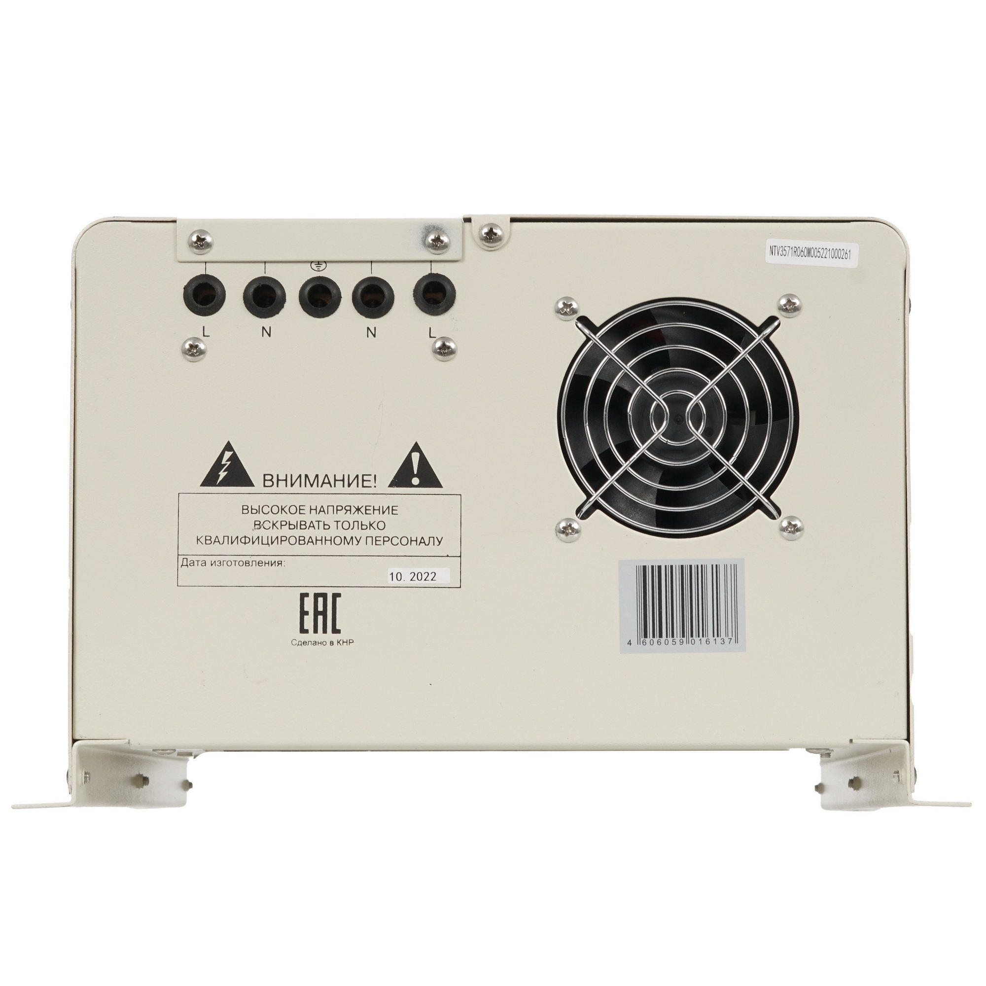 Ресанта АСН- 12000 Н/1-Ц Lux с показателем активной мощности 9.6 кВт позволяет подключать нагрузку, мощность которой не превышает этот показатель. Стабилизатор подходит для работы с сетью 50-60 Гц. Он выполнен в металлическом корпусе, что говорит о защите внутренних механизмов от повреждений. Для отображения параметров он использует цифровой дисплей, что обеспечивает удобство контроля и управления прибором. Вентилятор, предусмотренный конструкцией, обеспечивает эффективное охлаждение прибора. Для отключения аппарата и прямого подключения потребителей к сети используется специальный переключатель при поддержке функции «Байпас».