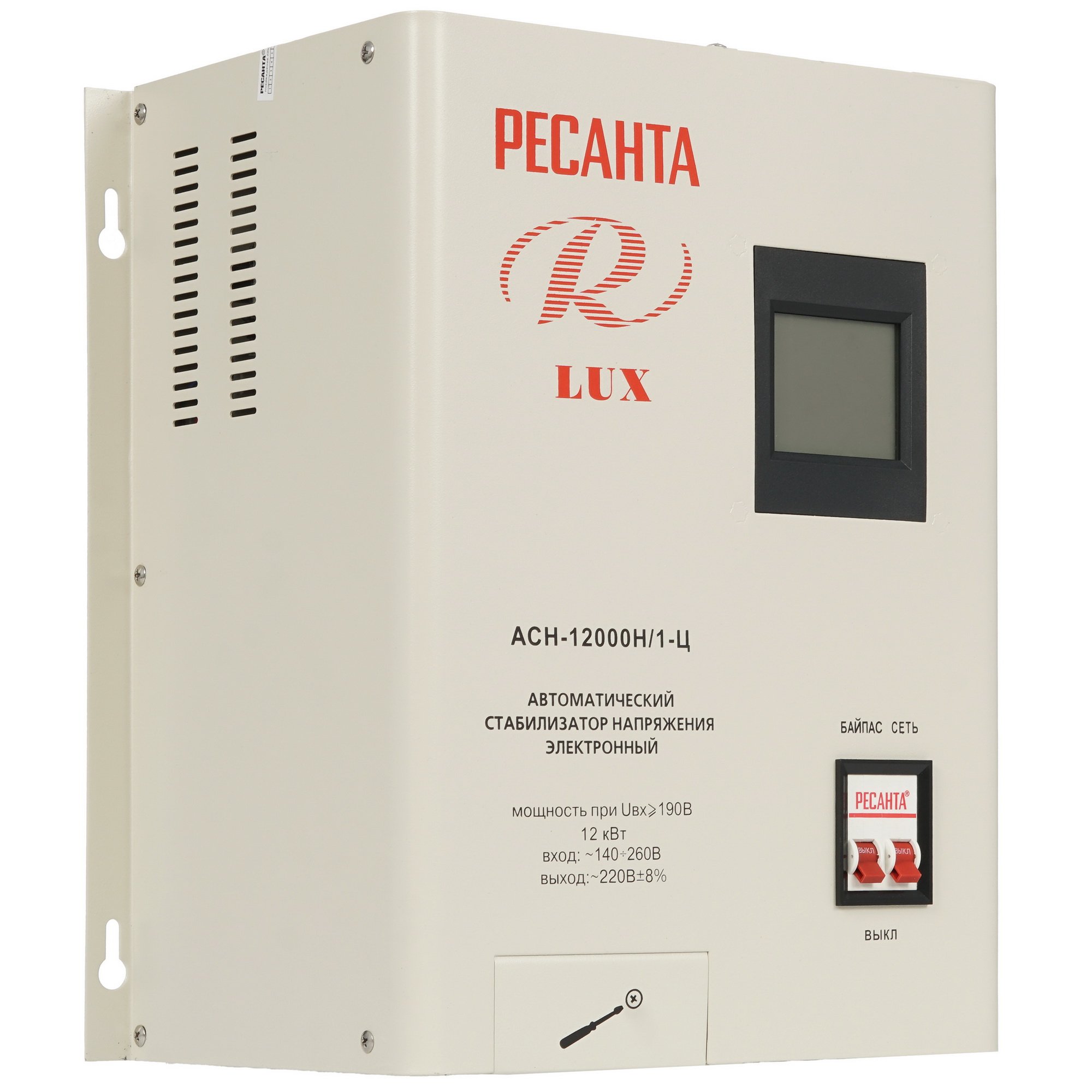 Стабилизаторы напряжения Ресанта АСН-12 000/Н1-Ц 63/6/22 Стабилизатор Lux 220В±8%, Габ. 305х190х360, Вес 19,5кг