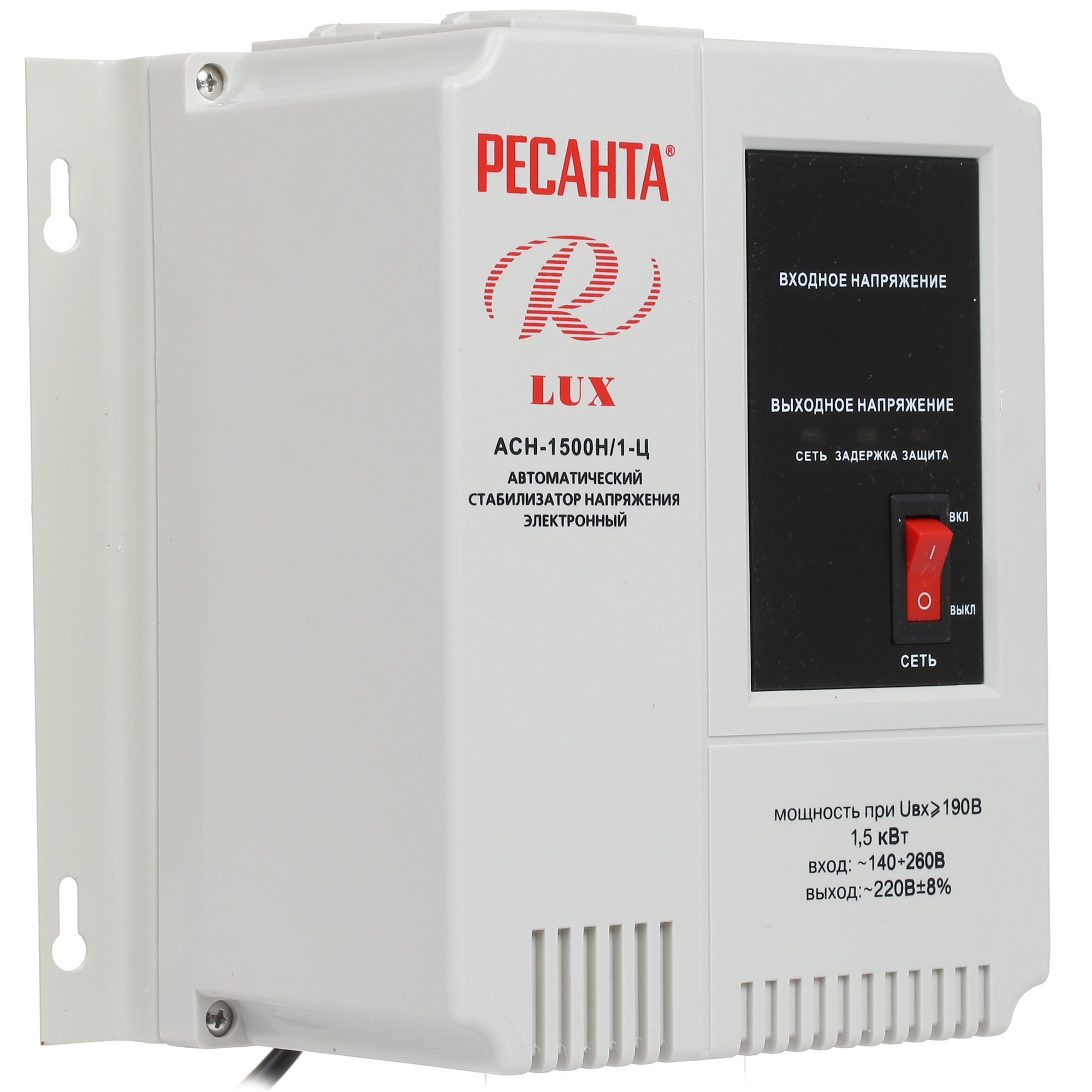 Стабилизаторы напряжения Ресанта АСН-1 500 Н/1-Ц 63/6/20 Стабилизатор Lux 220В±8%, Габариты 206х133х230, Вес 4,5кг