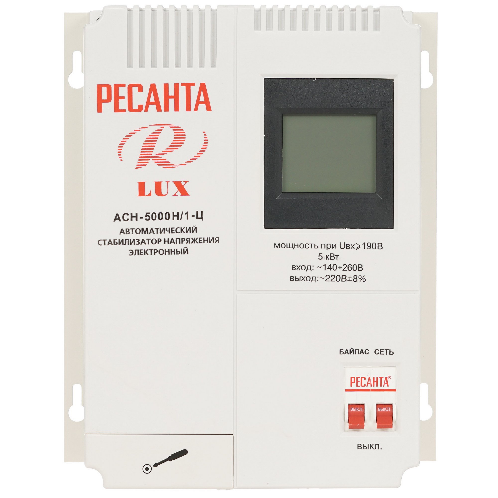 Стабилизаторы напряжения Ресанта АСН-5 000 Н/1-Ц 63/6/16 Стабилизатор Lux 220В±8%, Габариты 260х155х310, Вес 8кг
