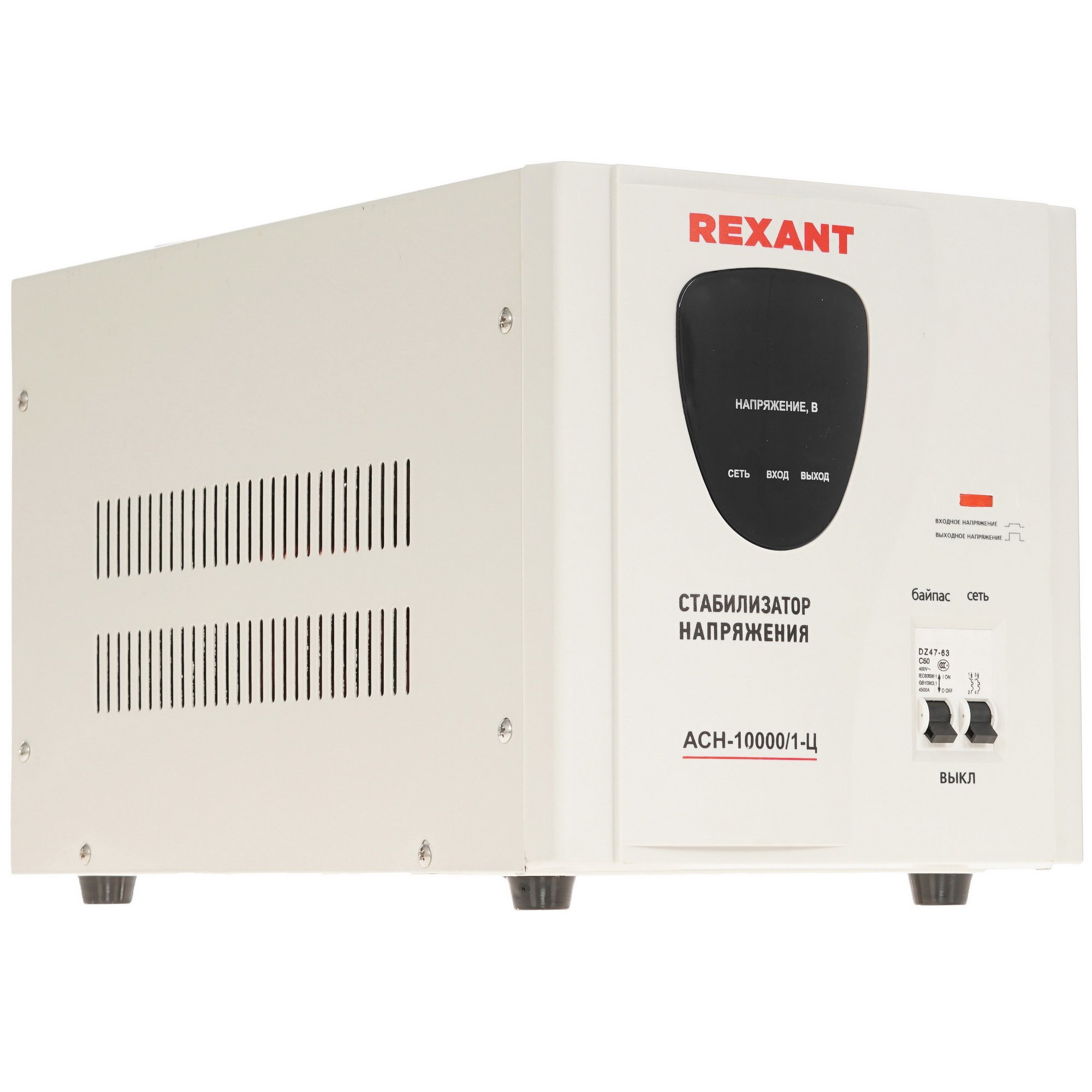 Стабилизатор напряжения АСН-10 000/1-Ц REXANT с активной выходной мощностью 10 кВт станет надежным решением для защиты техники от перепадов напряжения, короткого замыкания и перегрева. Релейный механизм стабилизации и автоматический предохранитель подчеркивают длительный эксплуатационный ресурс. Встроенный дисплей позволяет визуально контролировать параметры напряжения. Стабилизатор АСН-10 000/1-Ц REXANT выполнен в прочном корпусе с классом защищенности IP 20. К особенностям стабилизатора относятся активная система охлаждения, устойчивые ножки и две переносные ручки.