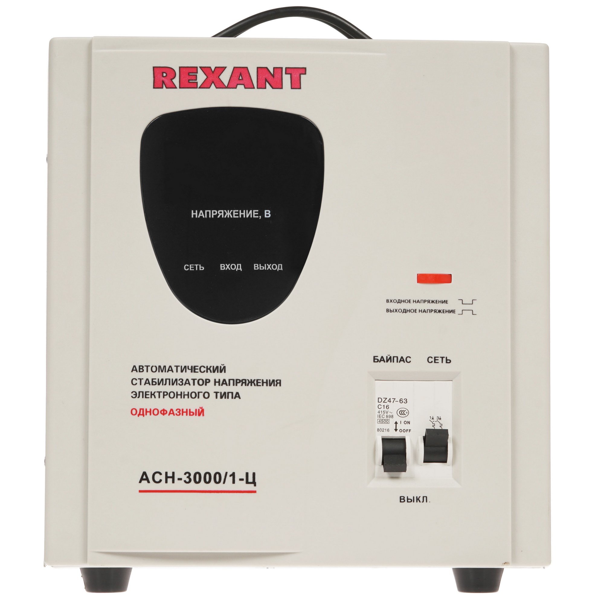Стабилизатор AСН-3 000/1-Ц REXANT обладает полной выходной мощностью на уровне 3000 ВА, широким диапазоном входного напряжения, КПД 97% и автоматическим предохранителем. На встроенном ЖК-дисплее отображаются основные параметры входного и выходного напряжения. Среди других особенностей отмечаются устойчивые ножки, переносная ручка и пассивное охлаждение.