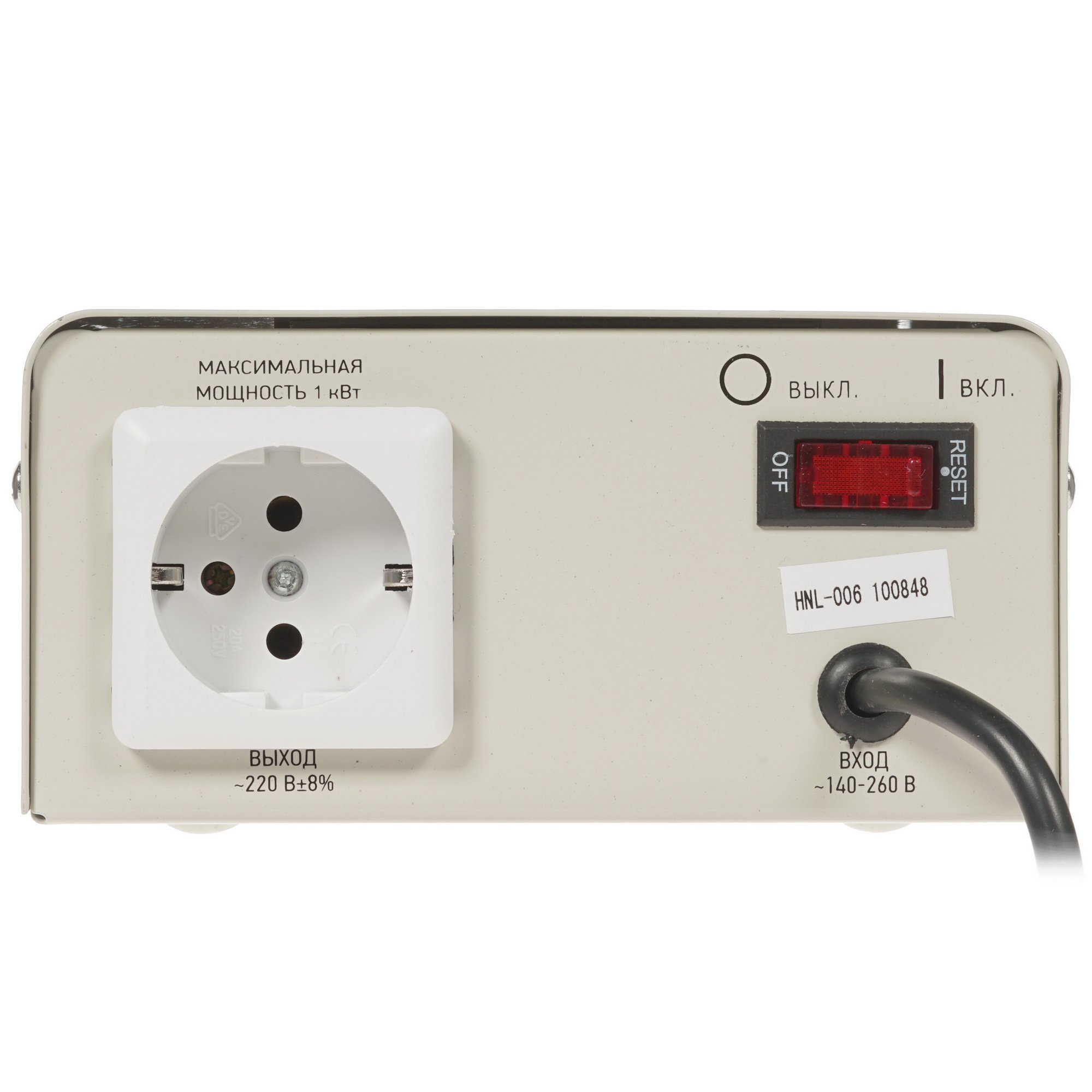 Стабилизатор напряжения АСНN-1000/1-Ц REXANT релейного типа отличается высокой эффективностью и надежностью в эксплуатации. Данный стабилизатор обладает полной выходной мощностью 1000 ВА, широким диапазоном входного напряжения 140-260 В и КПД 97%. На задней части корпуса расположены розетка и позиционный выключатель.