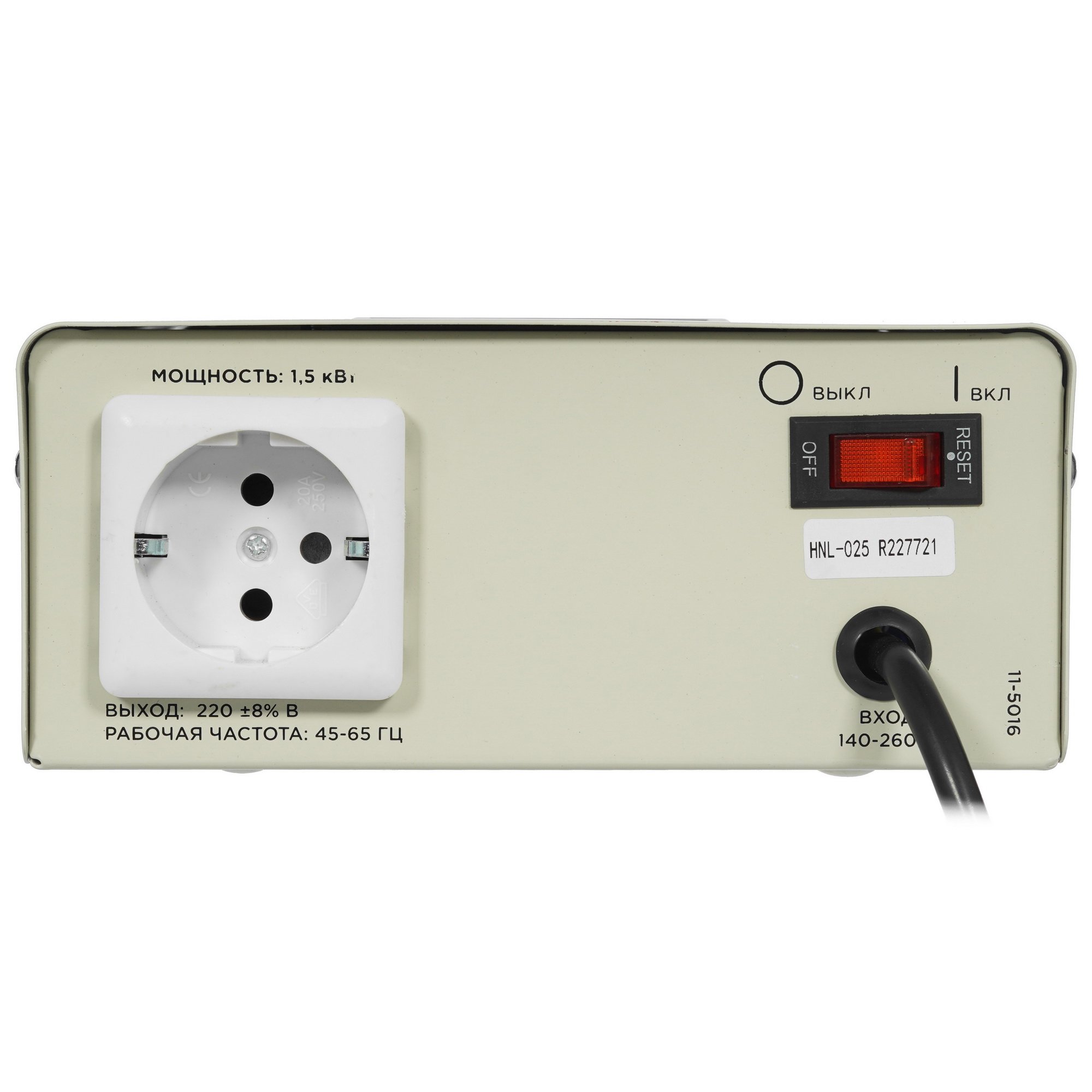 Стабилизатор АСНN-1500/1-Ц REXANT оснащен одной розеткой. Активная система охлаждения способствует эффективному отведению тепла. Корпус оборудования отличается прочностью и настенным монтажом.