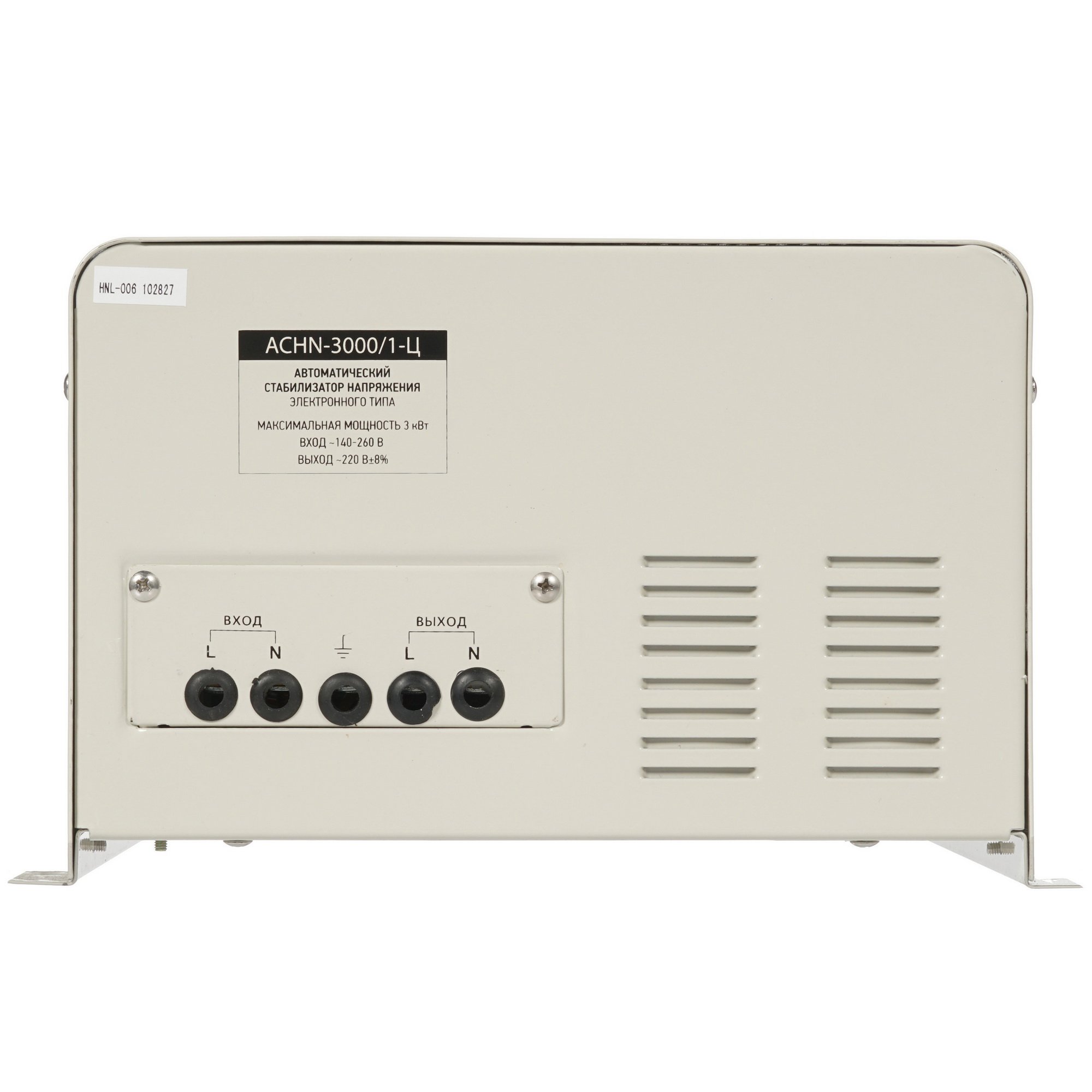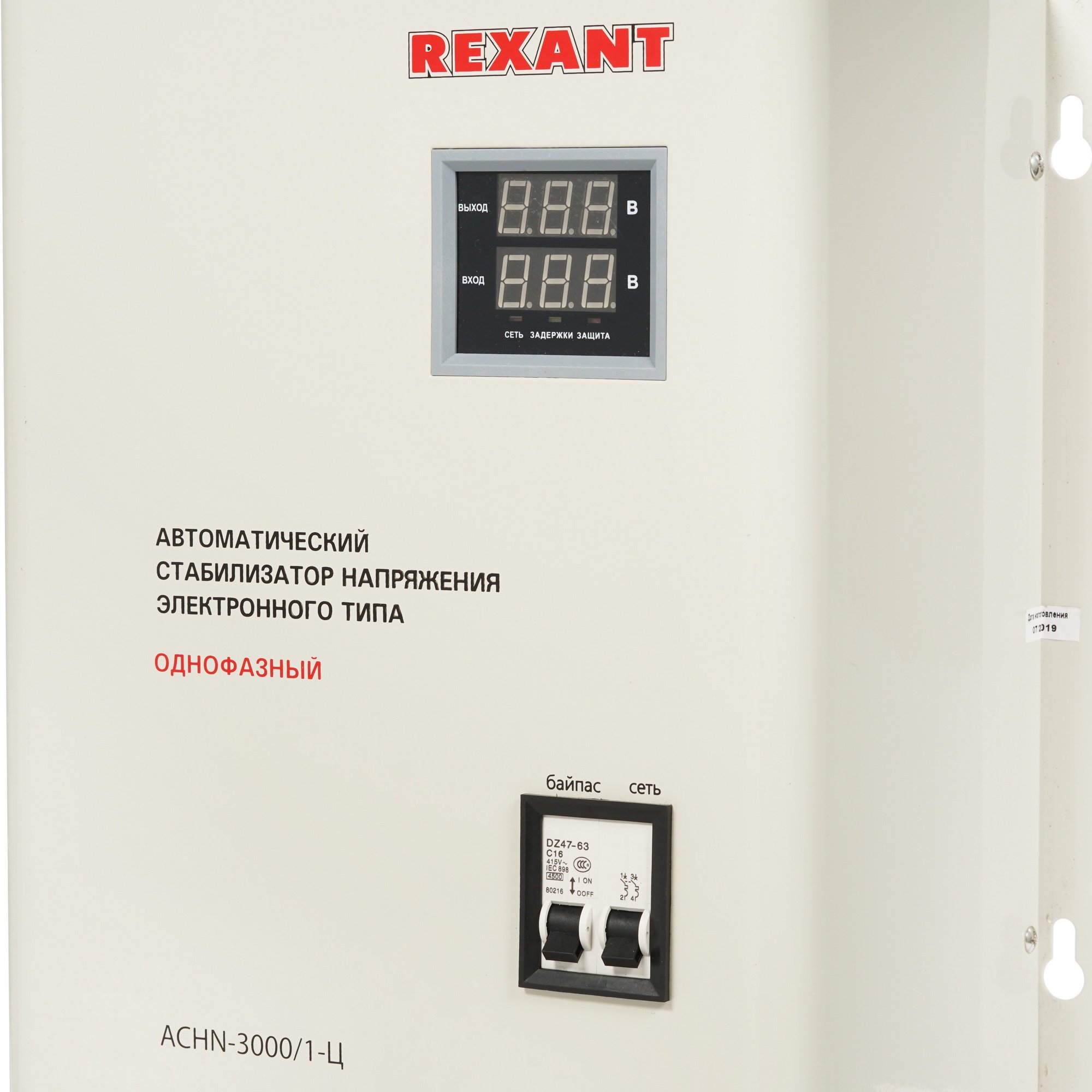 Стабилизатор АСНN-3000/1-Ц REXANT выполнен в прочном корпусе и предназначен для монтажа на стене. Для контроля параметров входного и выходного напряжения установлен цифровой ЖК-дисплей. Подключение нагрузки осуществляется через клеммы.