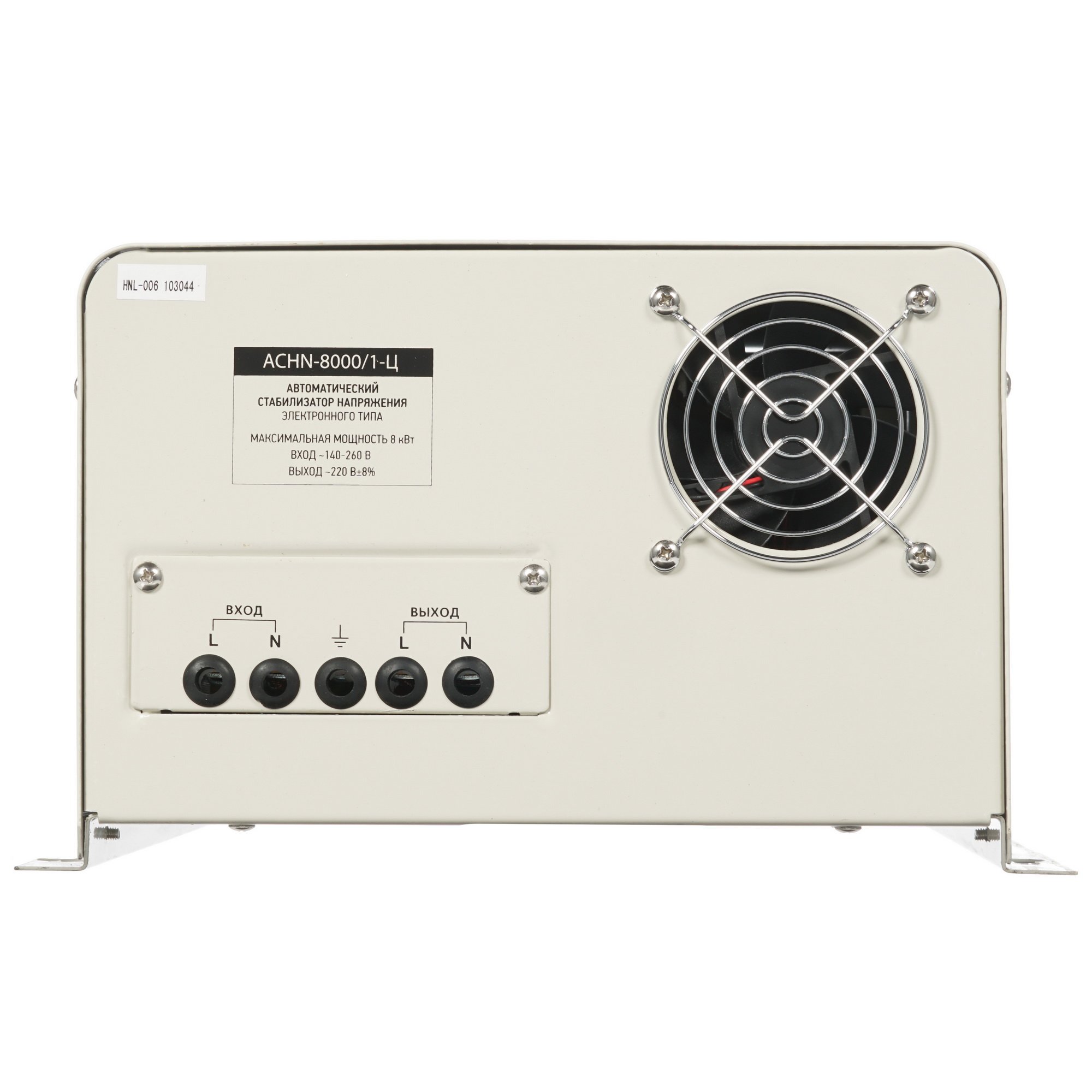 Стабилизатор напряжения АСНN-8000/1-Ц REXANT – одна из самых мощных моделей в линейке, обеспечивающая высокую точность стабилизации и надежность на протяжении длительной эксплуатации. Однофазный автоматический стабилизатор оборудован простым управлением с позиционными переключателями и цифровым дисплеем, на котором отображаются параметры входного и выходного напряжения. Данная модель характеризуется выходной мощностью на уровне значения 8 кВт, широким диапазоном входного напряжения и подключением при помощи клемм. Для повышения стабильности в АСНN-8000/1-Ц REXANT реализована активная система охлаждения с использованием вентилятора. Из других особенностей отмечаются функция байпас и настенное крепление.