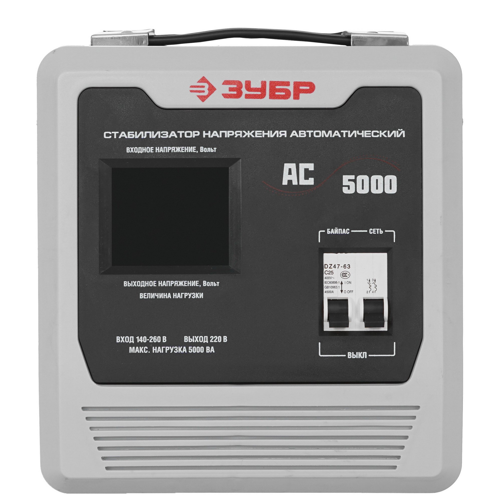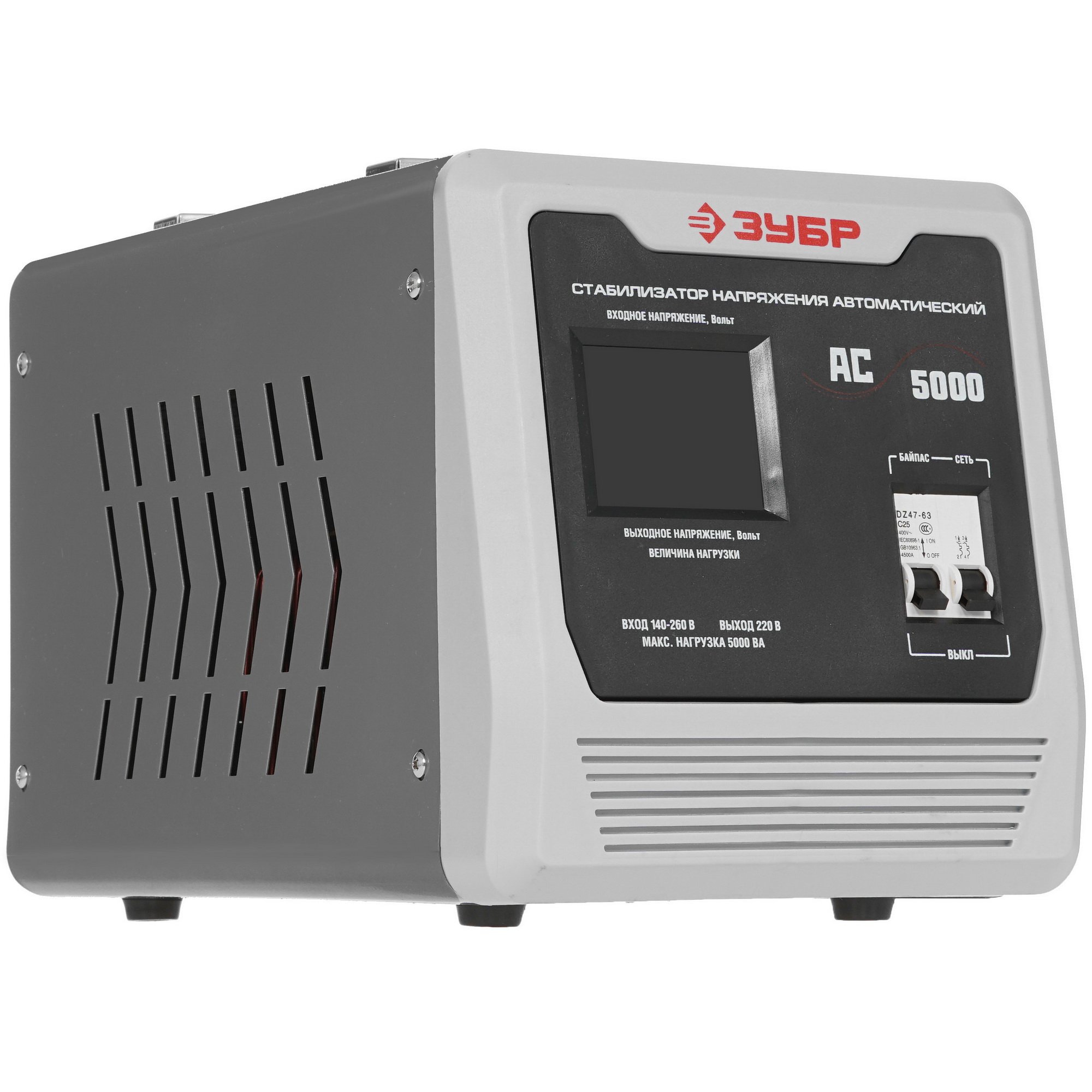 Профессиональный стабилизатор напряжения 5000 ВА, 140-260 В, 8% Зубр АС 5000
