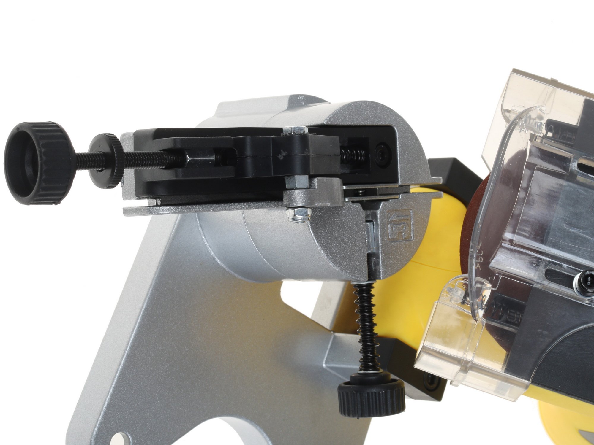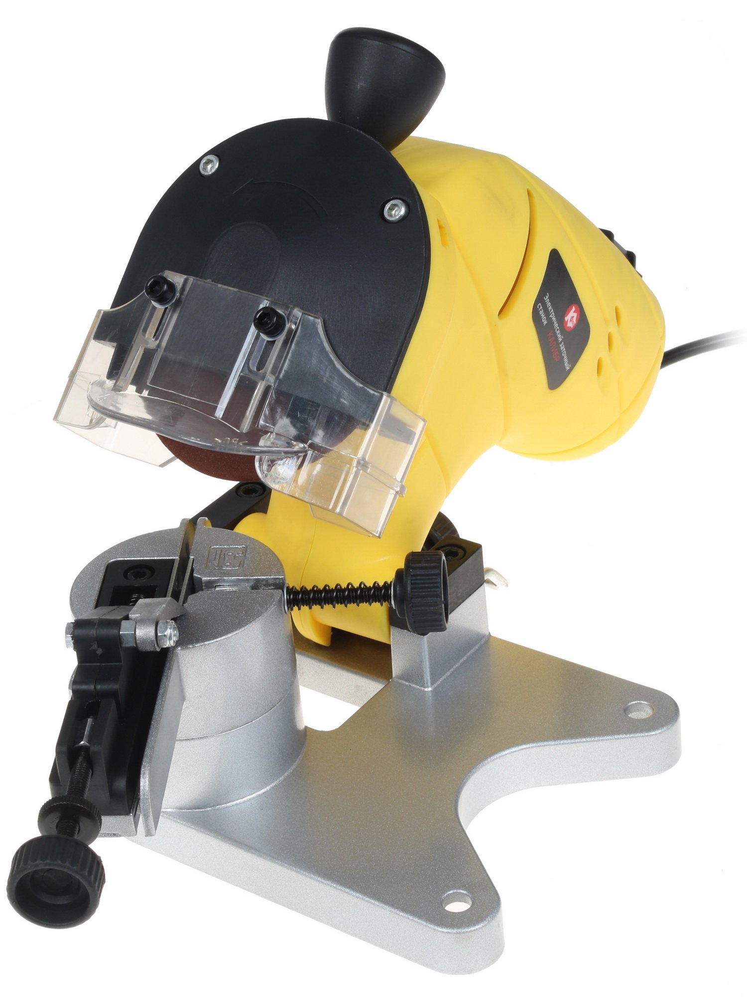 Станок Калибр Мастер ЭЗС-130М оснащается 100-миллиметровым абразивным диском, для установки которого используется посадочный диаметр, равный 10 мм. Безопасность работы помогает обеспечить защитный экран. Экран прозрачен.