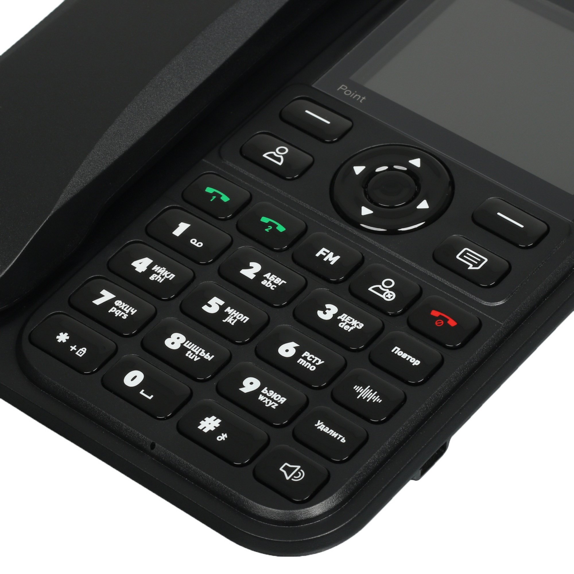 Стационарный сотовый телефон BQ 2839 Point в настольном черном корпусе получает пару слотов для подключения сим-карт формата Mini-SIM и поддерживает подключением к GSM-сетям. Он является полноценной альтернативой проводного стационарного телефона и в то же время отличается портативностью.