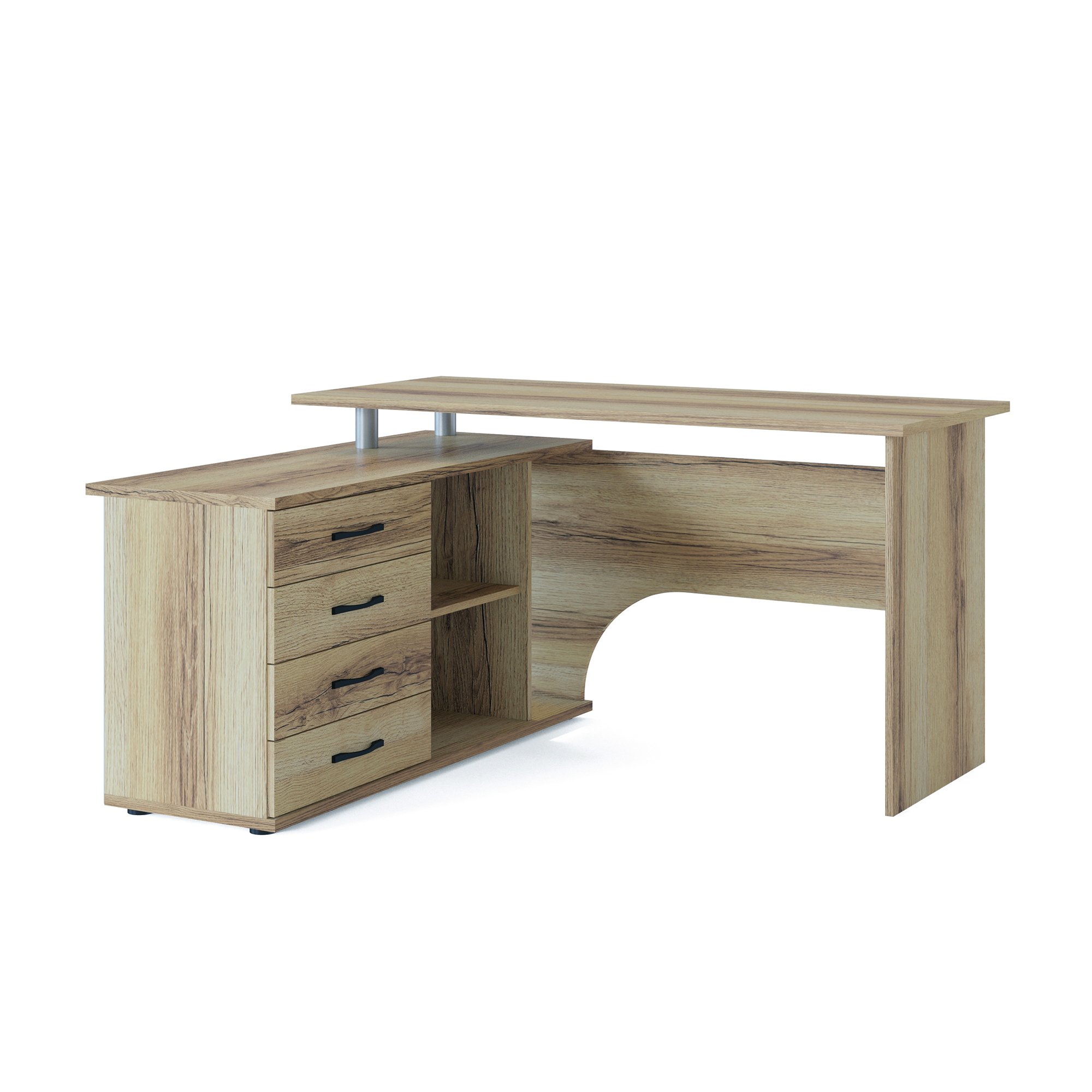 Стол компьютерный Сокол КСТ-109Л получил столешницу шириной 140 мм и глубиной 60 мм из ЛДСП с покрытием из ламината, оно устойчиво к влаге, царапинам и легко очищается от пыли и грязи. Дополнительно в столешнице находится углубление для проводов. В столе есть четыре ящика, три полки и встроенная тумба для удобства размещения книг, канцелярии, периферийных устройств. Также в модели есть полка для установки системного блока.