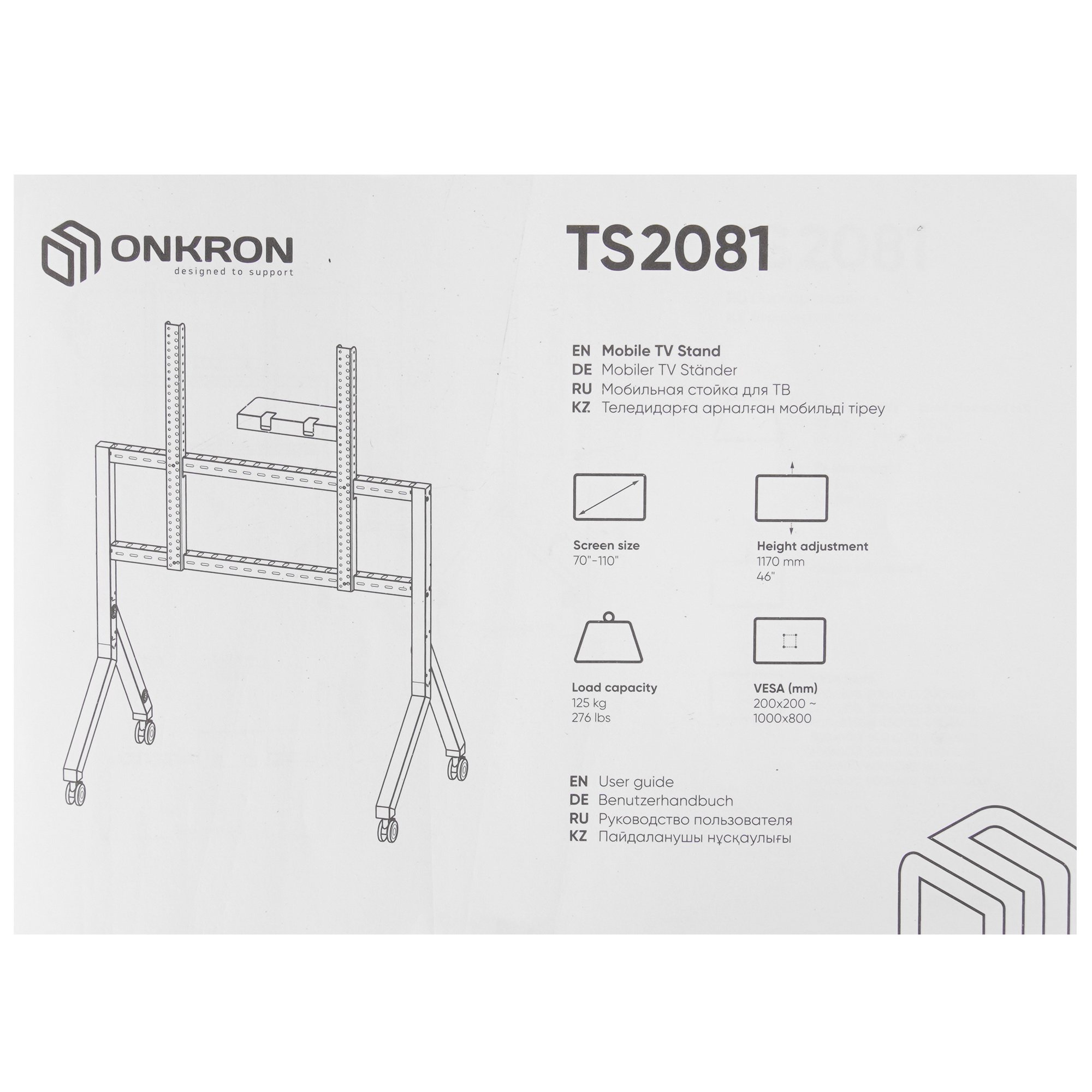 Стойка для телевизора с кронштейном ONKRON TS1881 50"-86", мобильная, черная