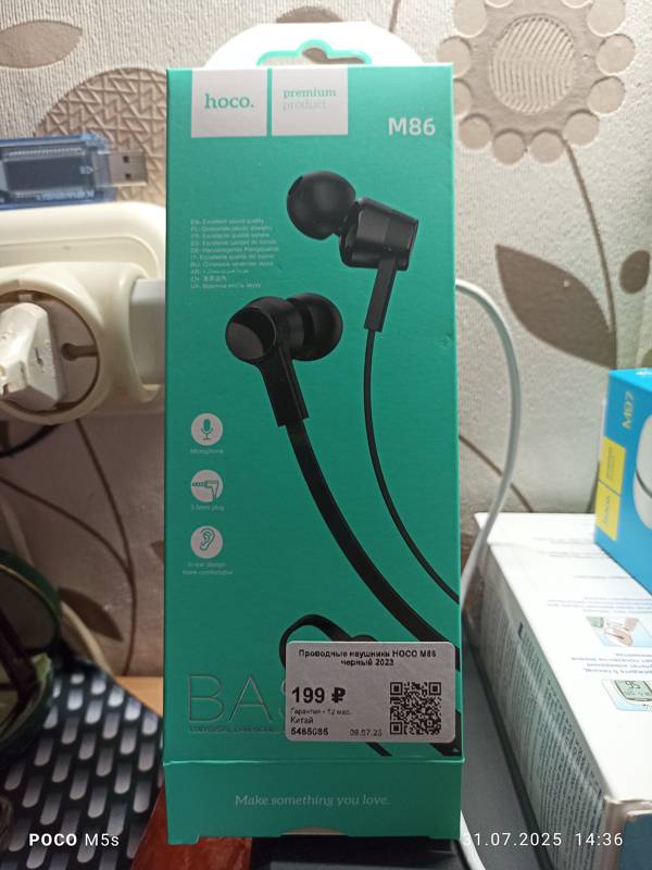 HOCO M86 - проводные наушники с микрофоном, аудио коннектором 3.5мм и управлением музыкой и звонками одной кнопкой.