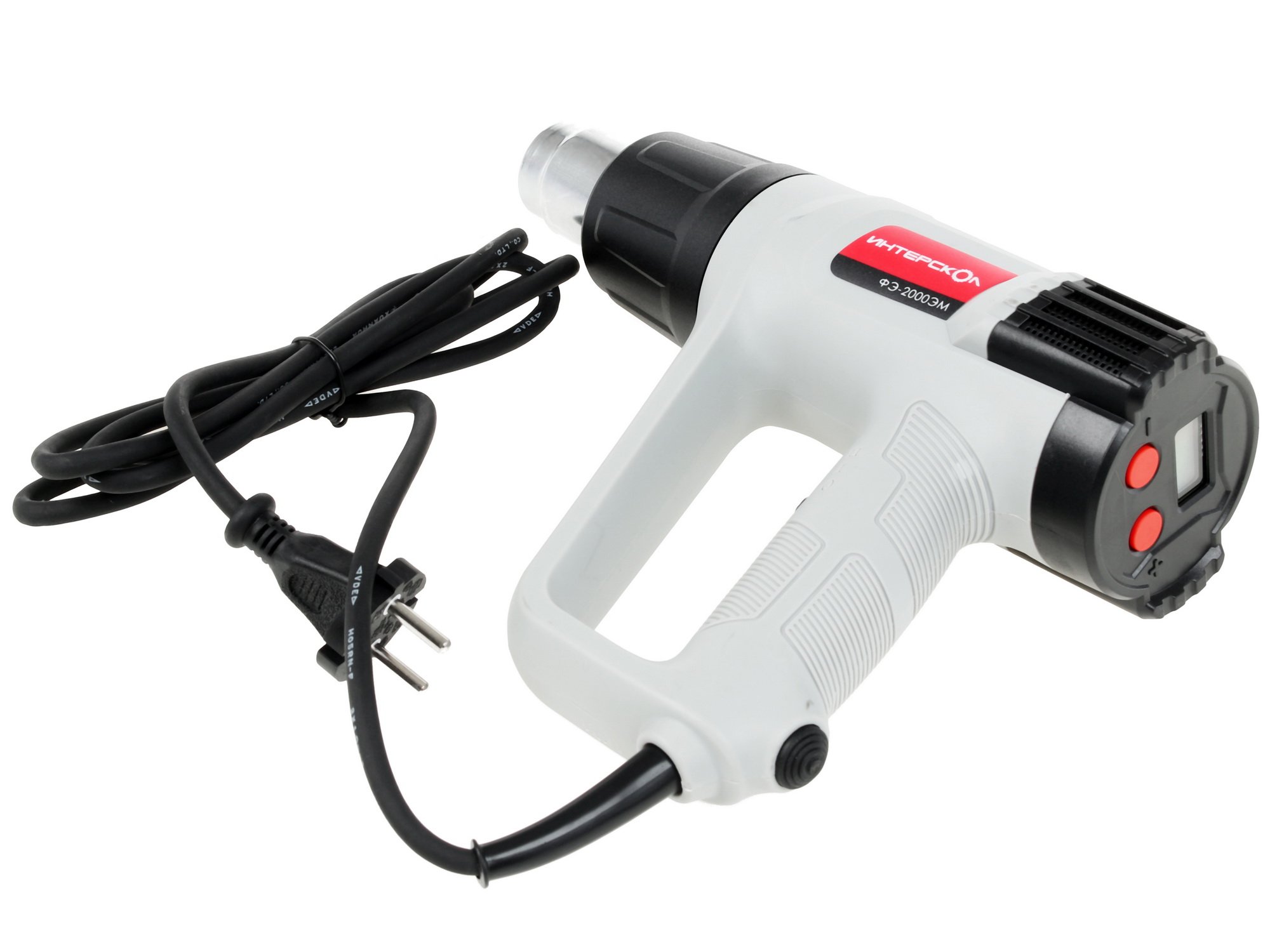 Фен технический ИНТЕРСКОЛ ФЭ-2000ЭМ, 2000Вт,50-600°С,поток 300-500л/мин,дисплей,0.77кг 385.0.1.00