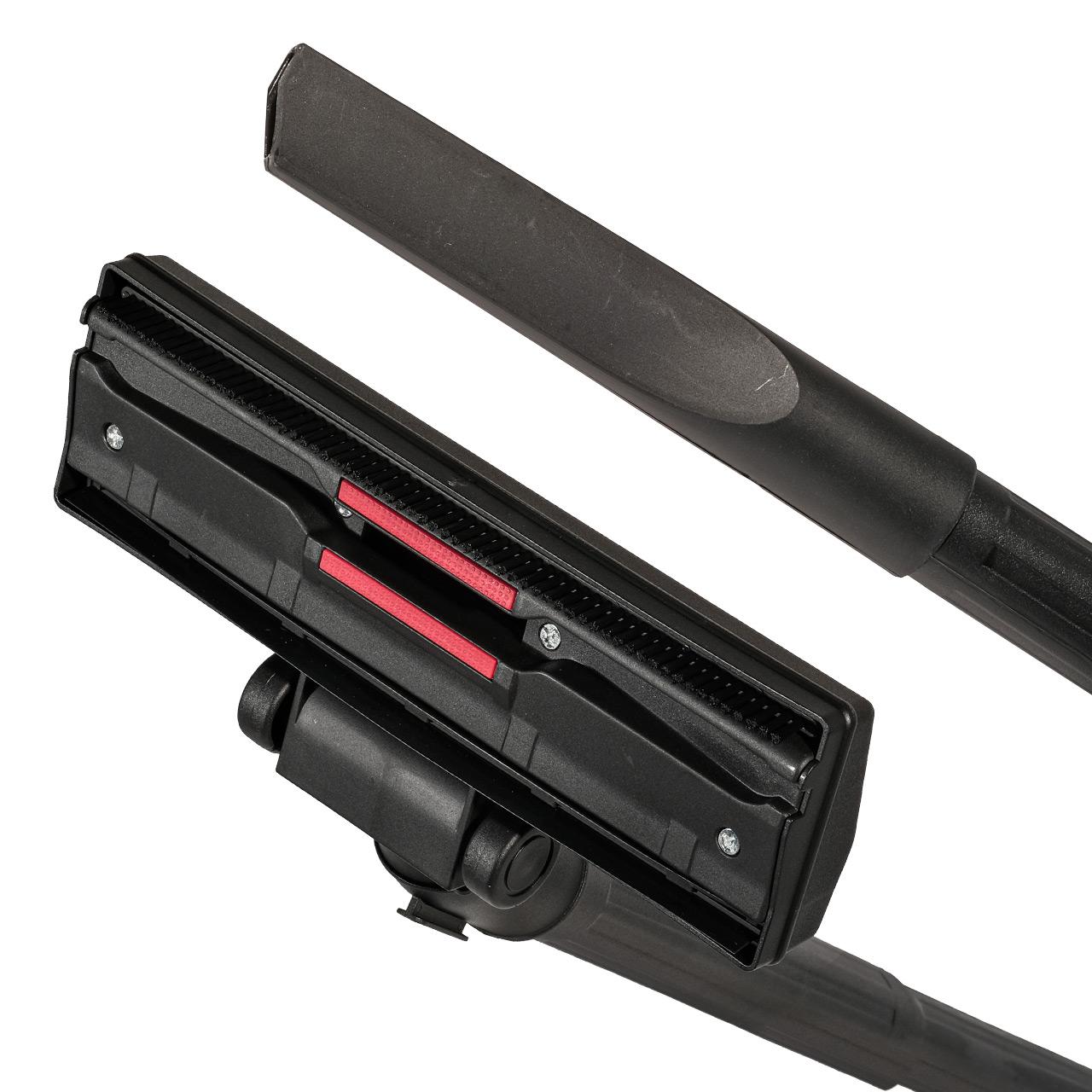 Корпус пылесоса оборудован специальными креплениями для аксессуаров, что обеспечивает удобство хранения и быстрый доступ к необходимым насадкам. Также пылесос оснащен розеткой для подключения электроинструмента мощностью до 2000 Вт, что позволяет вам использовать его вместе с другими электроинструментами для более эффективного проведения работ. Встроенную розетку можно использовать как удлинитель, без активации пылесоса.