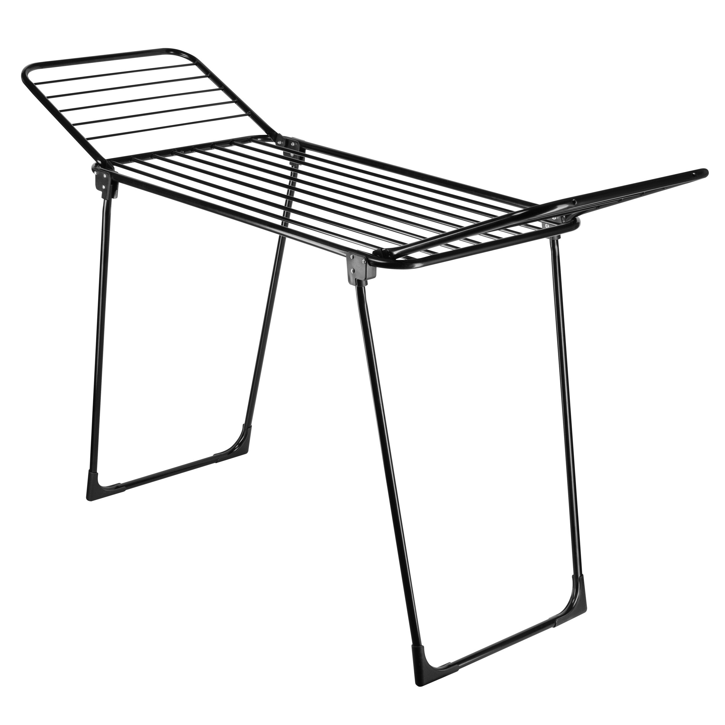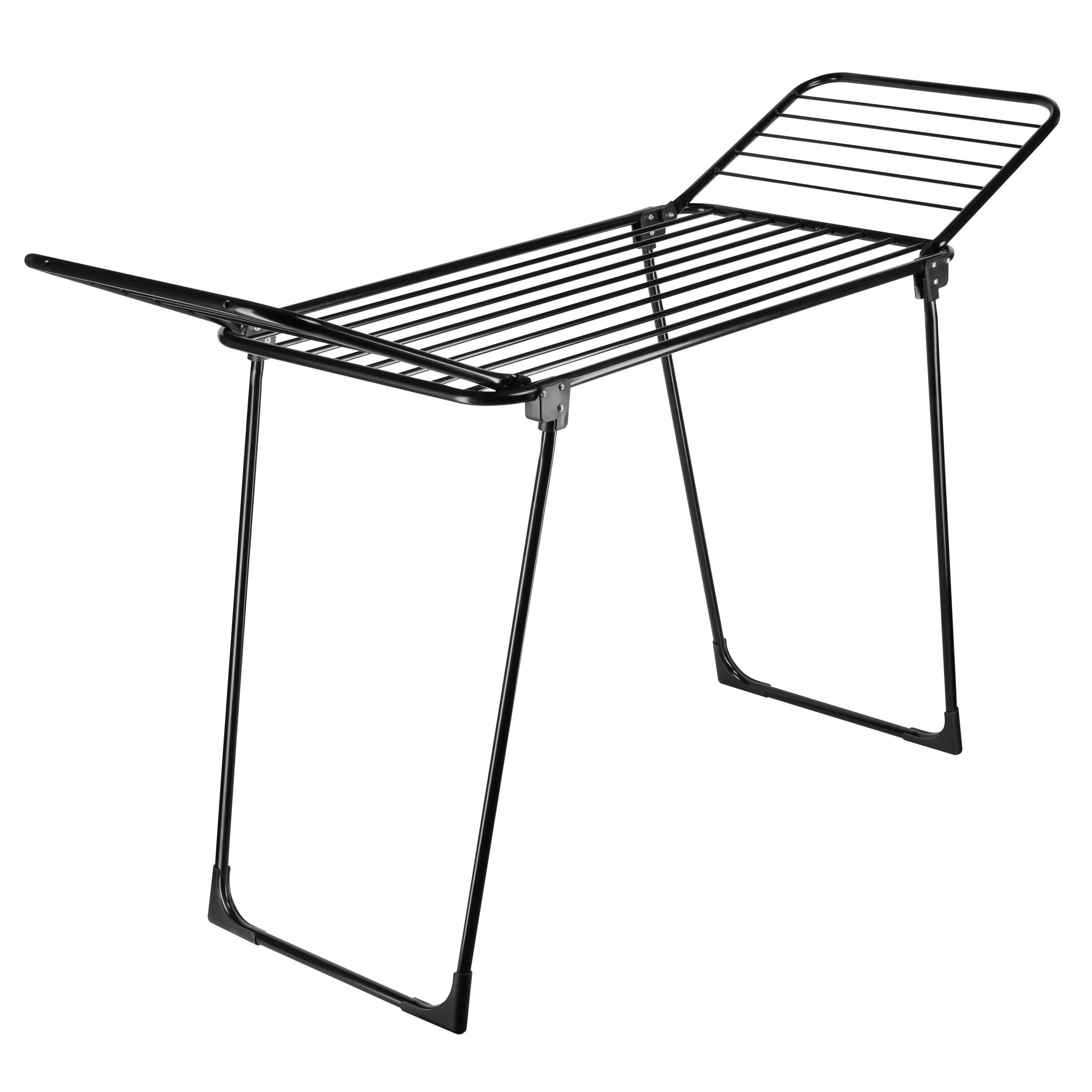 Сушилка выполнена в стильном черном цвете, а прочные трубки (ø 7/9/19мм) не оставляют следов и заломов на белье и одежде и обеспечивают более быстрое высыхание. На ножках установлены пластиковые накладки, что делает конструкцию устойчивой и безопасной для напольного покрытия.