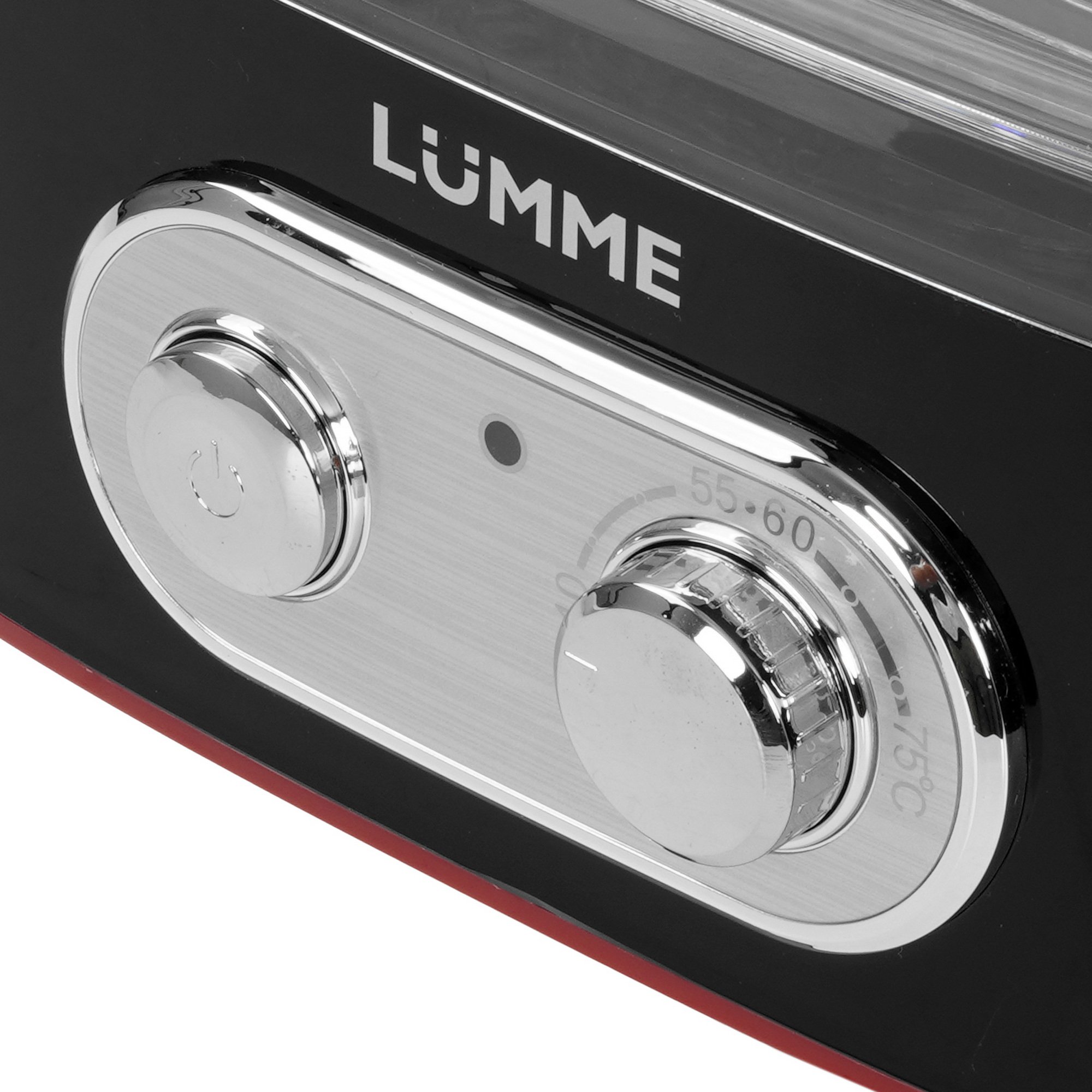 Электросушилка позволяет подобрать оптимальный температурный режим от 40 до 75°С для любого продукта при помощи удобного механического регулятора, выбрать режим щадящей сушки при малых температурах или режим экспресс-сушки при высоких.