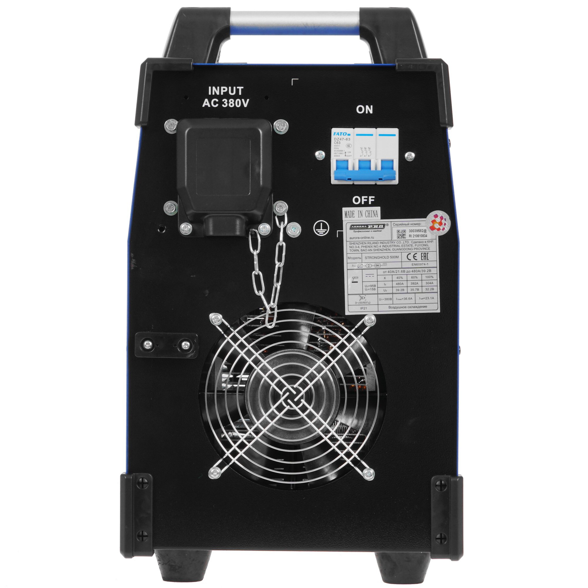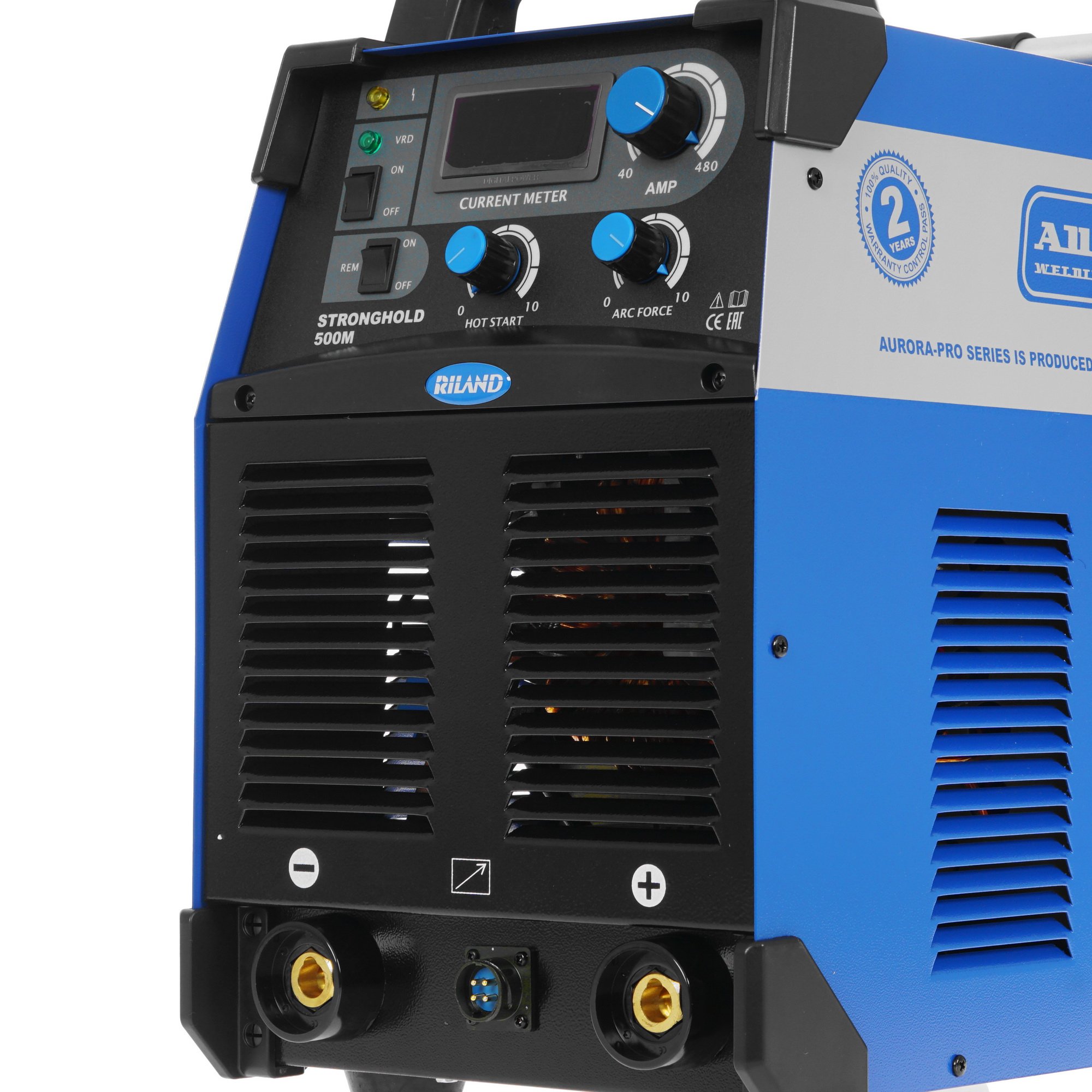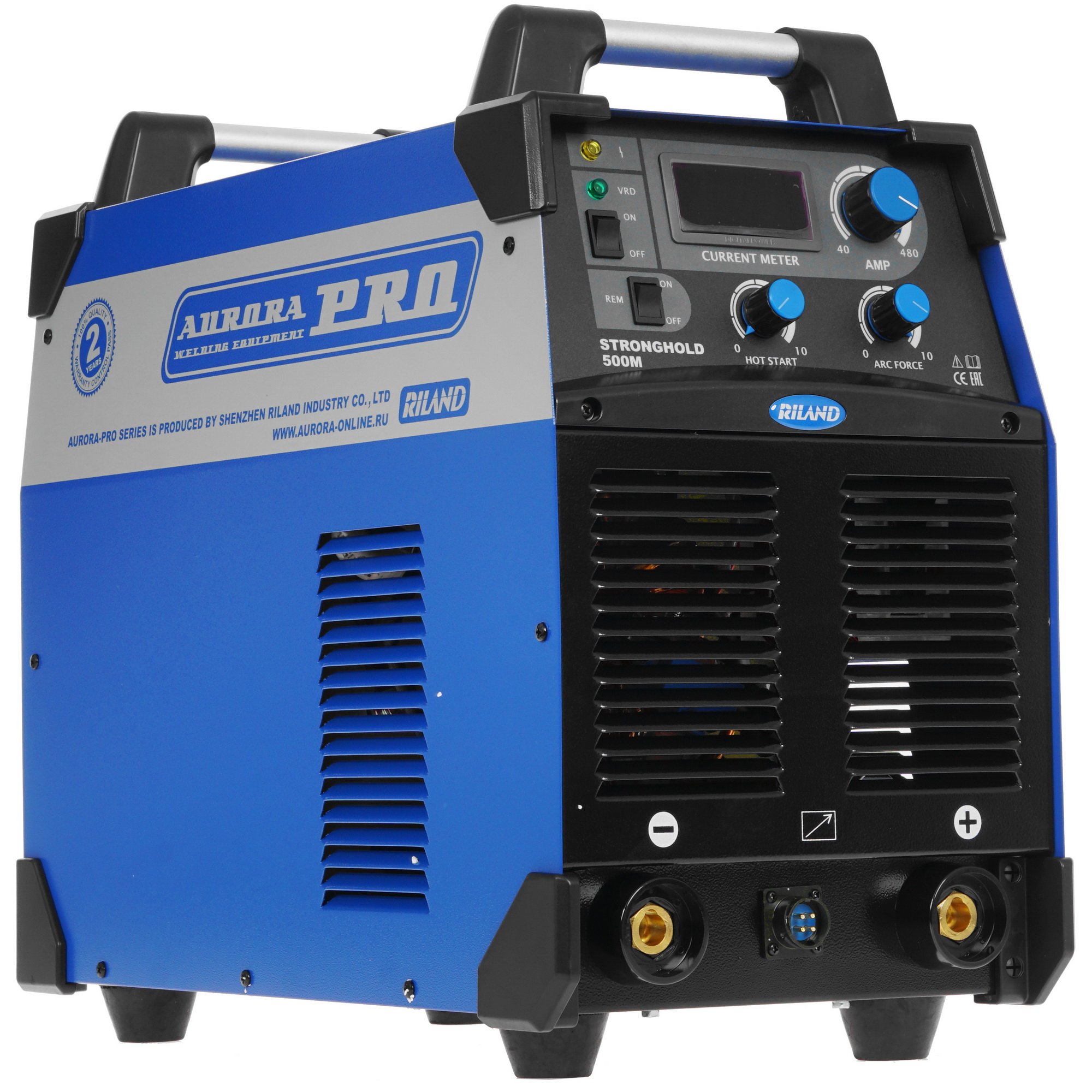 Сварочный аппарат Aurora PRO STRONGHOLD 500M – профессиональное оборудование инверторного типа, предназначенное для сварки электродами в режиме MMA. Данная модель характеризуется мощностью 23.8 кВт и широким диапазоном сварочного тока в пределах 40-480 А. Благодаря микропроцессорному управлению обеспечивается стабильность выполнения сварки. Панель с поворотными переключателями и дисплеем помогает с точностью управлять доступными параметрами. На верхней части расположены две ручки для простого перемещения аппарата Aurora PRO STRONGHOLD 500M.