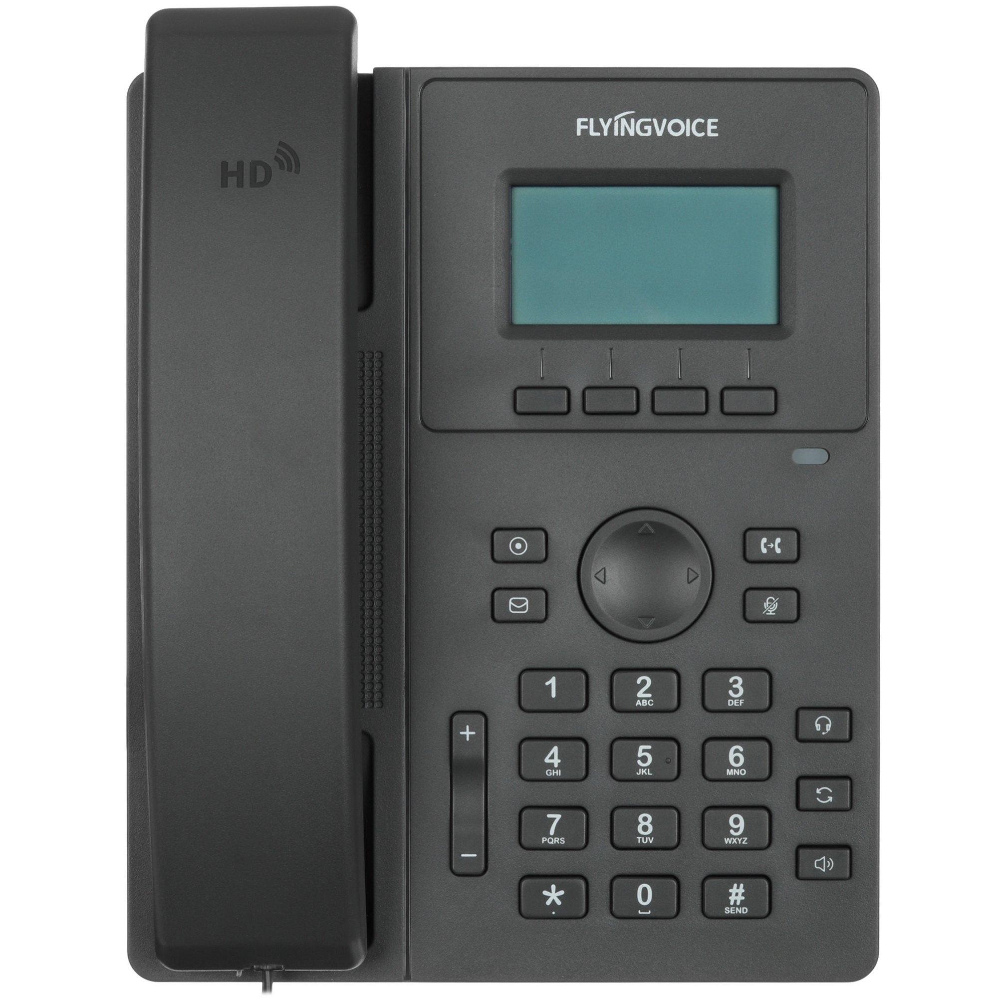 Телефон VoIP Flyingvoice P10P серого цвета – проводная модель с поддержкой 2 SIP аккаунтов и режима маршрутизатора. Для сетевых подключений используется пара 100-мегабитных портов. Информация о вызовах и другие данные выводятся на монохромный экран. Преимуществом модели является возможность получения питания по витой паре от коммутатора или другого оборудования с поддержкой PoE. Альтернативный источник энергии – электрическая сеть.