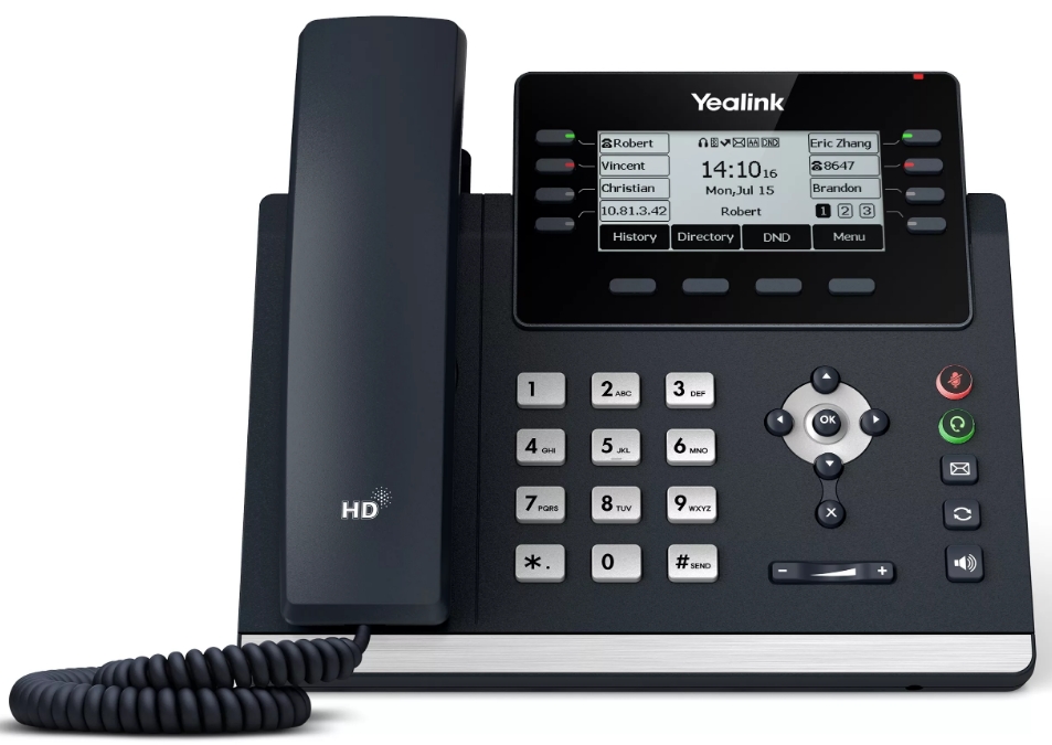 Телефон VoIP Yealink SIP-T43U черный во время работы использует технологию Yealink Optima HD, которая помогает значительно повышать качество связи. Отличительной особенностью данной модели является наличие двух портов USB. К ним можно подключить как гарнитуру, для большего удобства, так и внешний накопитель, что позволит записывать диалог.