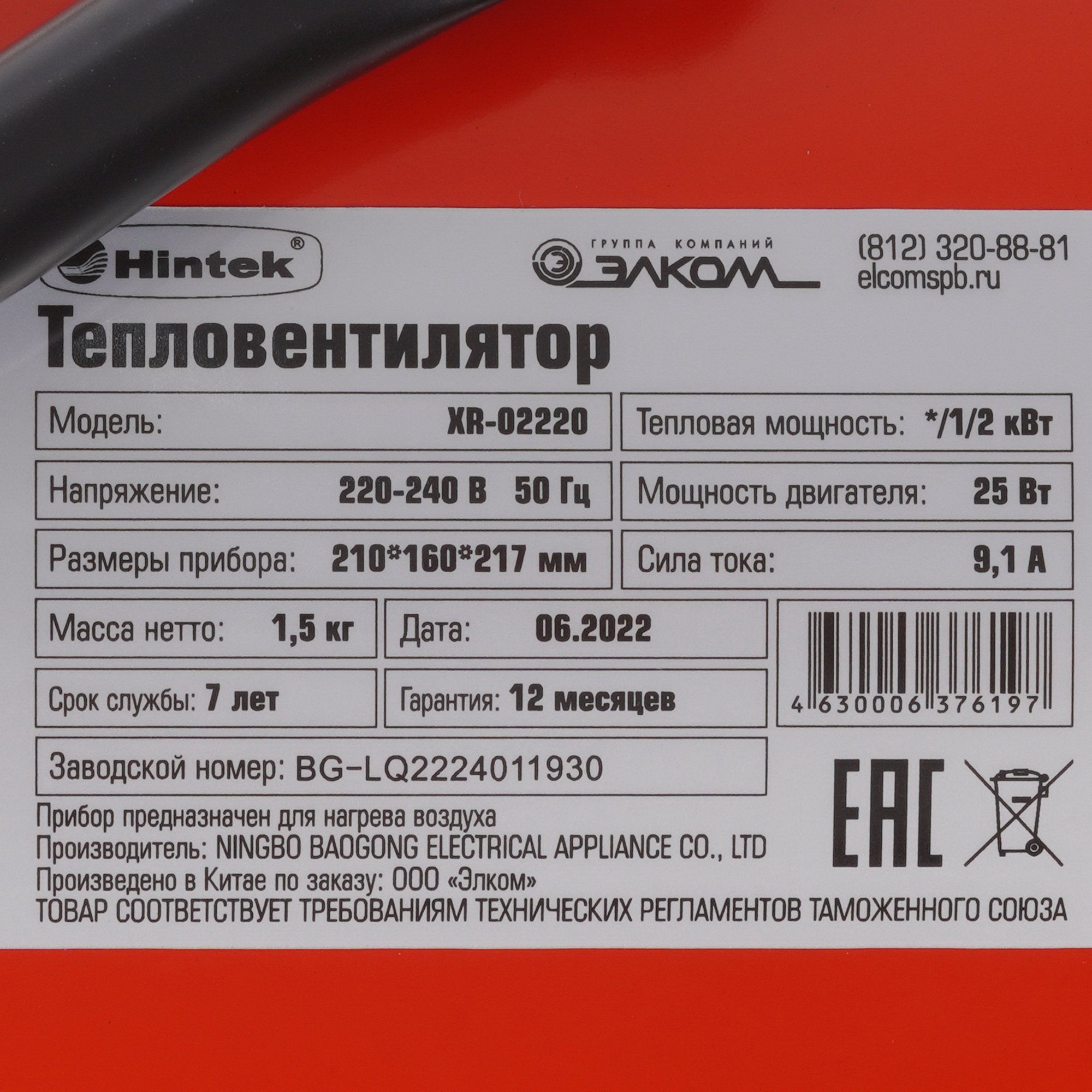 Тепловая пушка Hintek XR-02220 представляет собой компактное оборудование, предназначенное для быстрого обогрева производственных помещений, складов, цехов, строительных площадок. Данная модель оснащена двумя режимами обогрева с мощностью до 2 кВт и режимом вентиляции без нагрева. Встроенный вентилятор равномерно распределяет нагретый воздушный поток от керамического элемента. Металлическая стойка гарантирует удобное размещение прибора и возможность регулировки угла наклона. Для простого перемещения в верхней части Hintek XR-02220 расположена ручка.