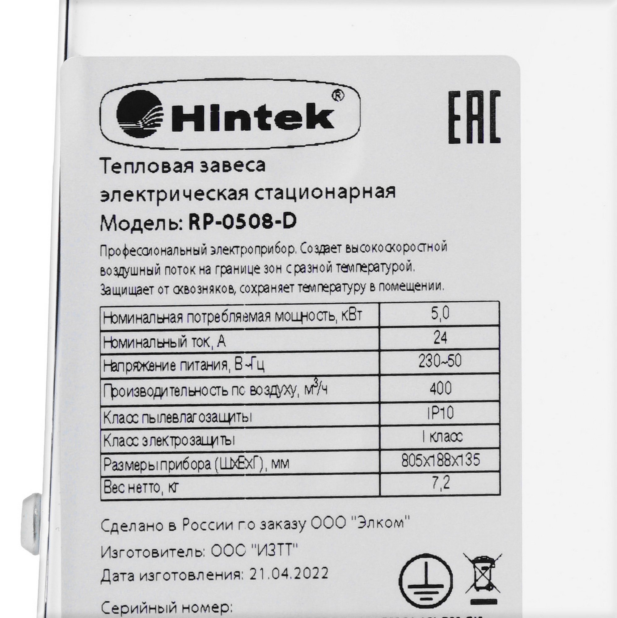 Завеса тепловая 5кВт 0.8м 220В стич-элемент RP-0508-D HINTEK 04.03.01.214396