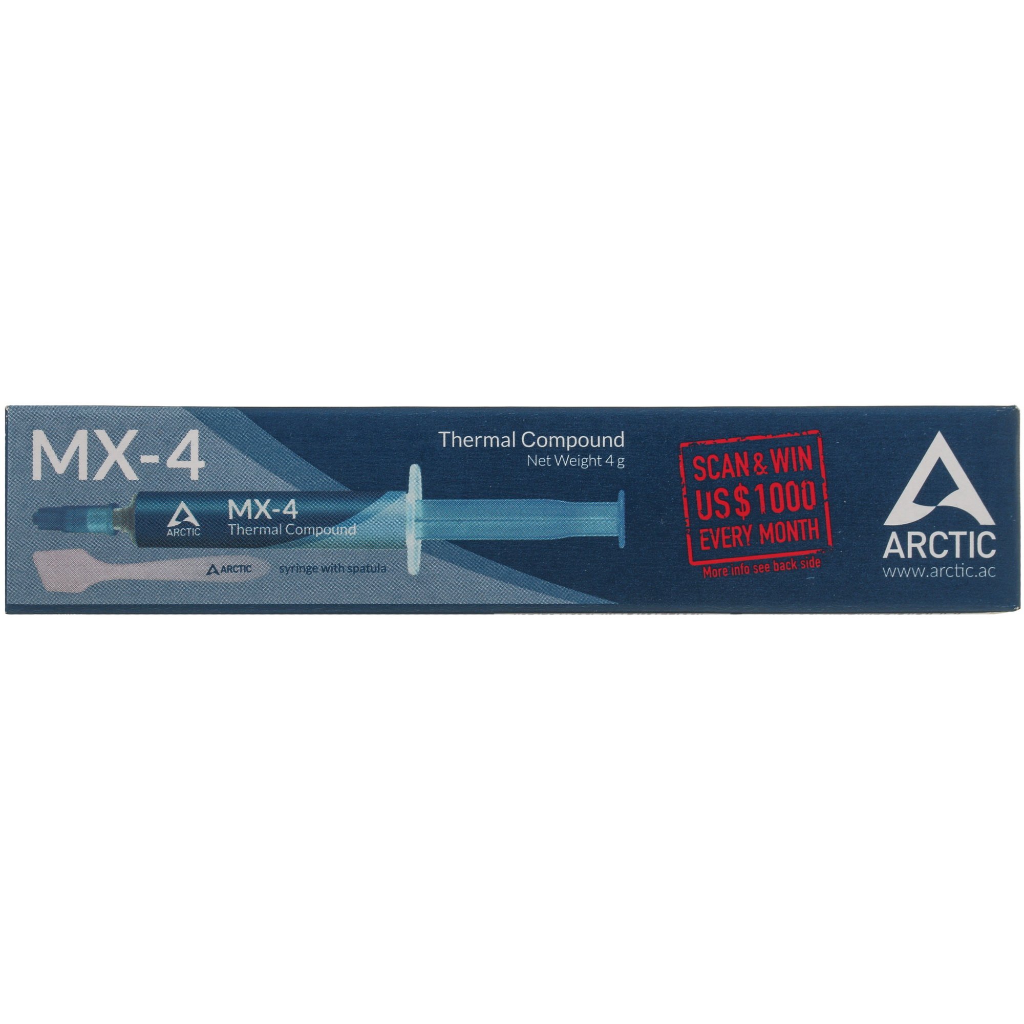 В основе Arctic Cooling MX-4 применяются высококачественные компоненты без токопроводящих и летучих веществ. Благодаря этому смесь отличается низким уровнем вязкости и хорошо заполняет собой микроскопические потертости и сколы для наибольшей теплопередачи. Кром того, данная термопаста отличается большим сроком службы, не подвержена высыханию и не трескается с течением времени.