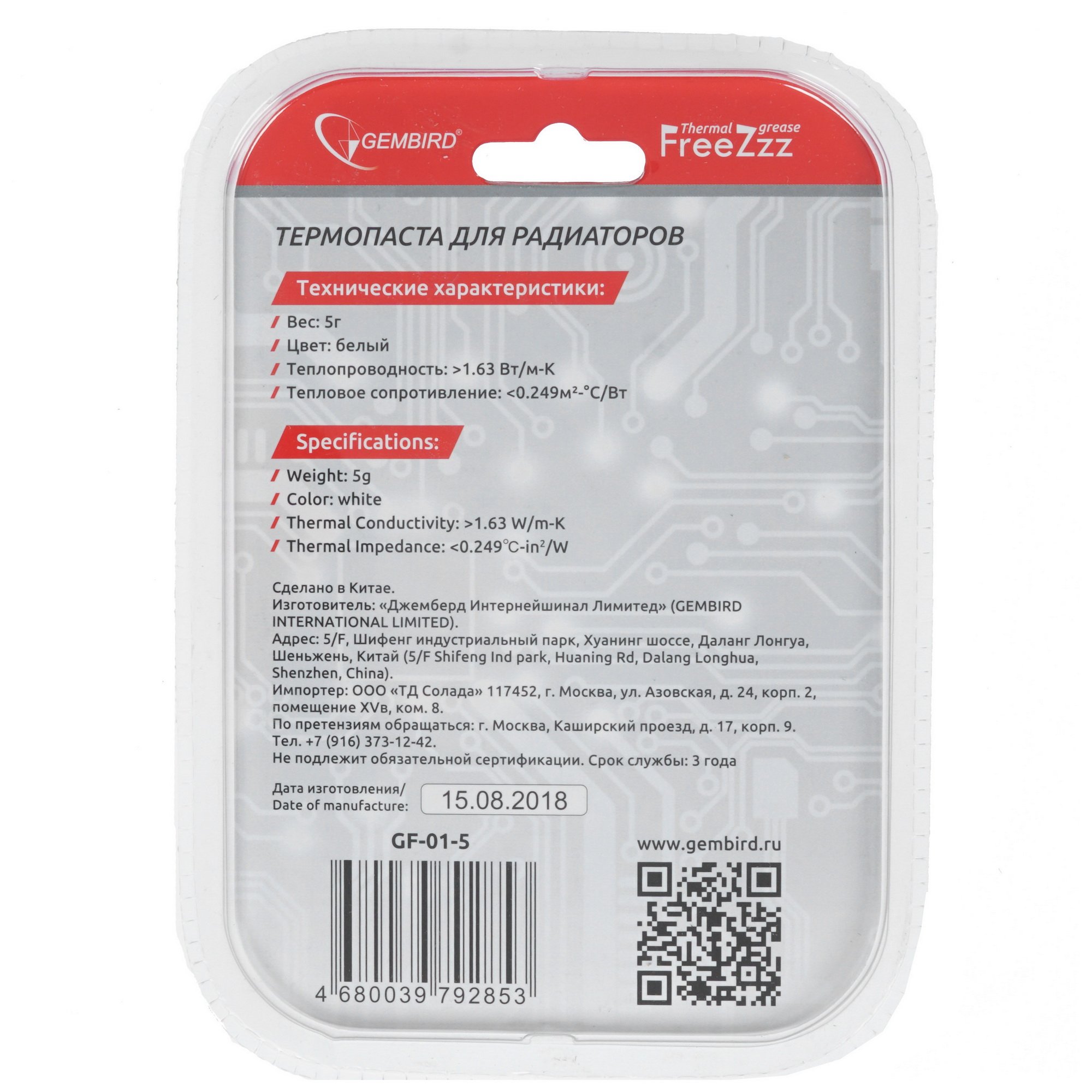 Термопаста Gembird FreeZzz GF-01-5 для радиаторов, 5гр, шприц