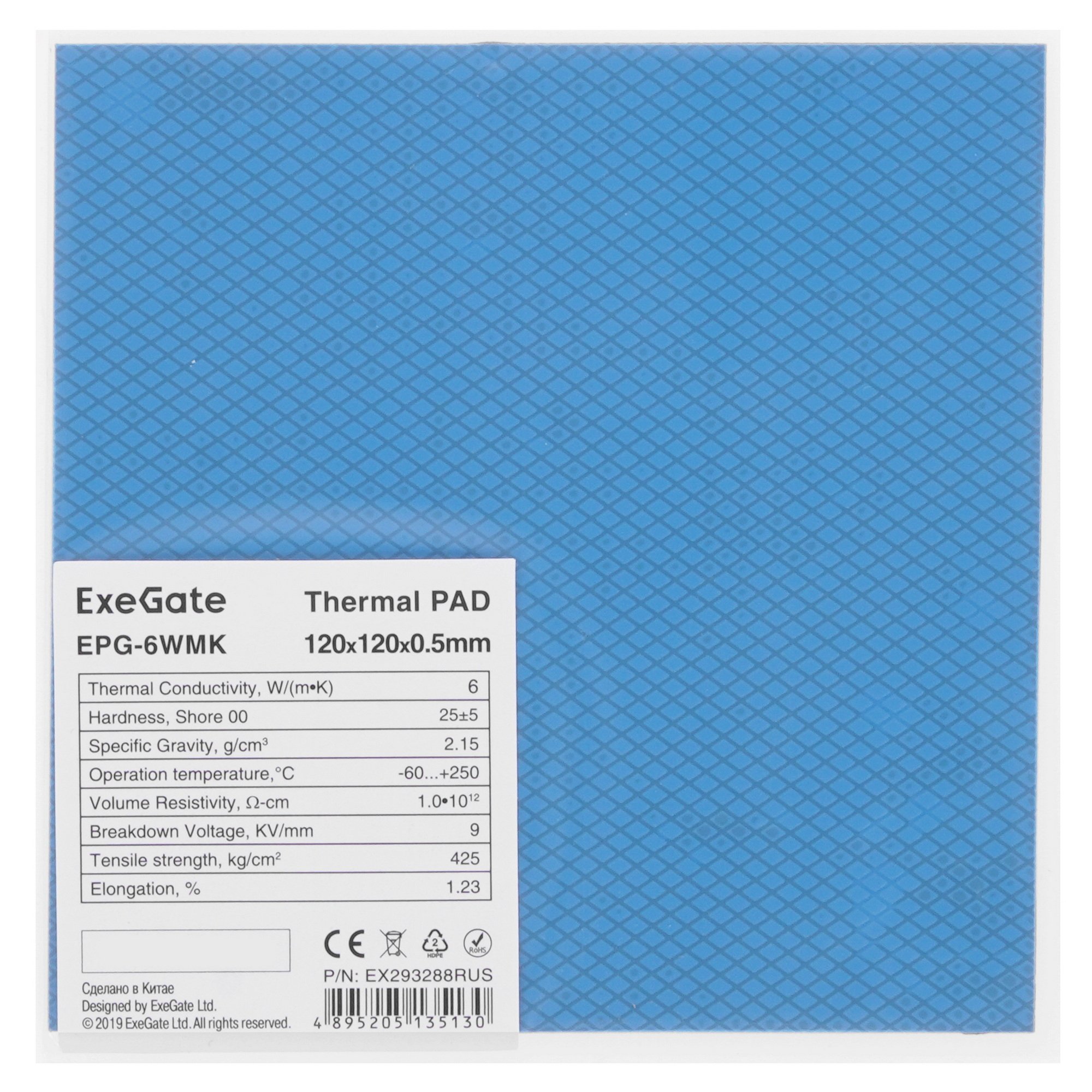 Термопрокладка ExeGate EPG-6WMK (120x120x1.0 мм, 6 Вт/ (м•К))