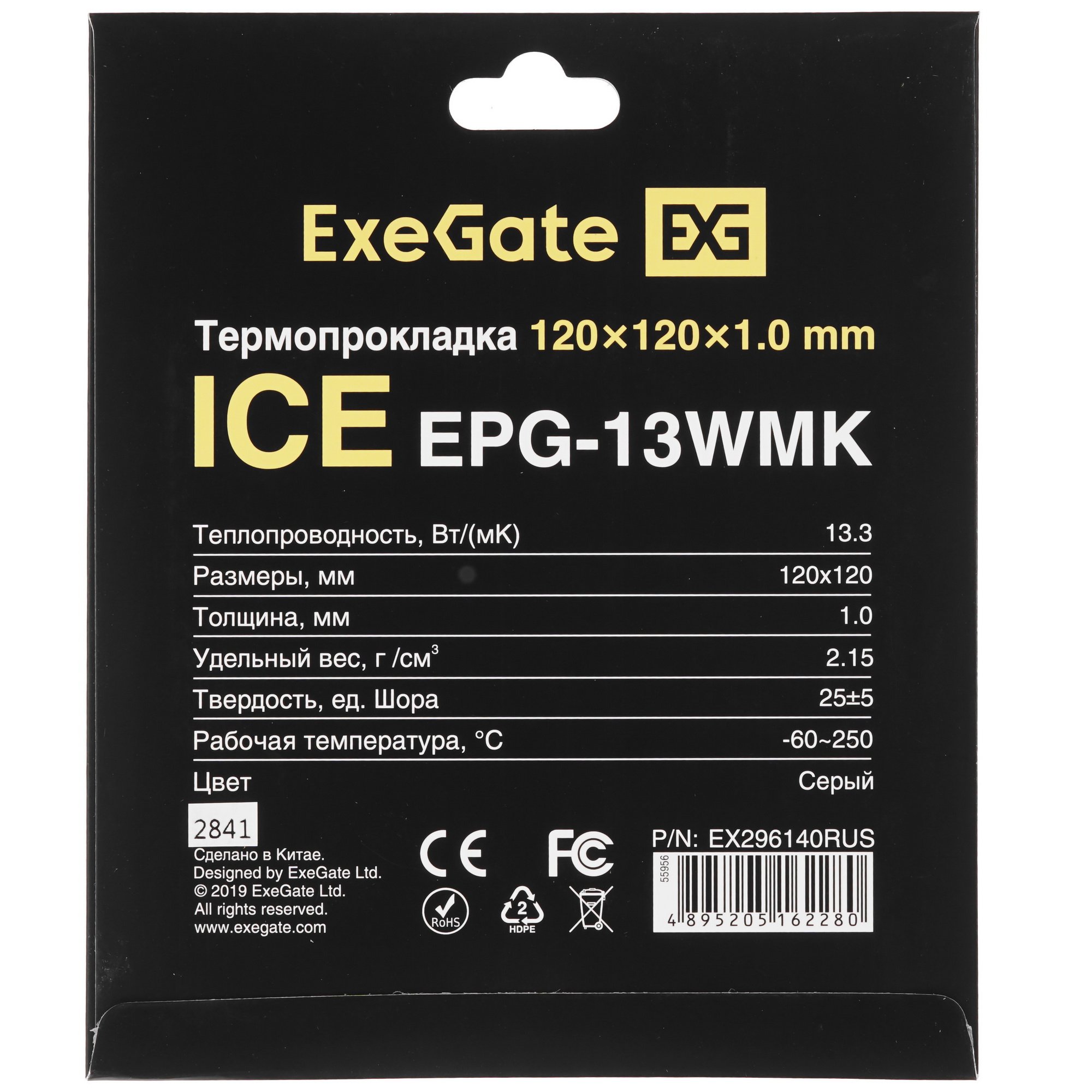 Термопрокладка ExeGate Ice EPG-13WMK (120x120x1.0 мм, 13,3 Вт/ (м•К), теплопроводящая клейкая двухсторонняя)