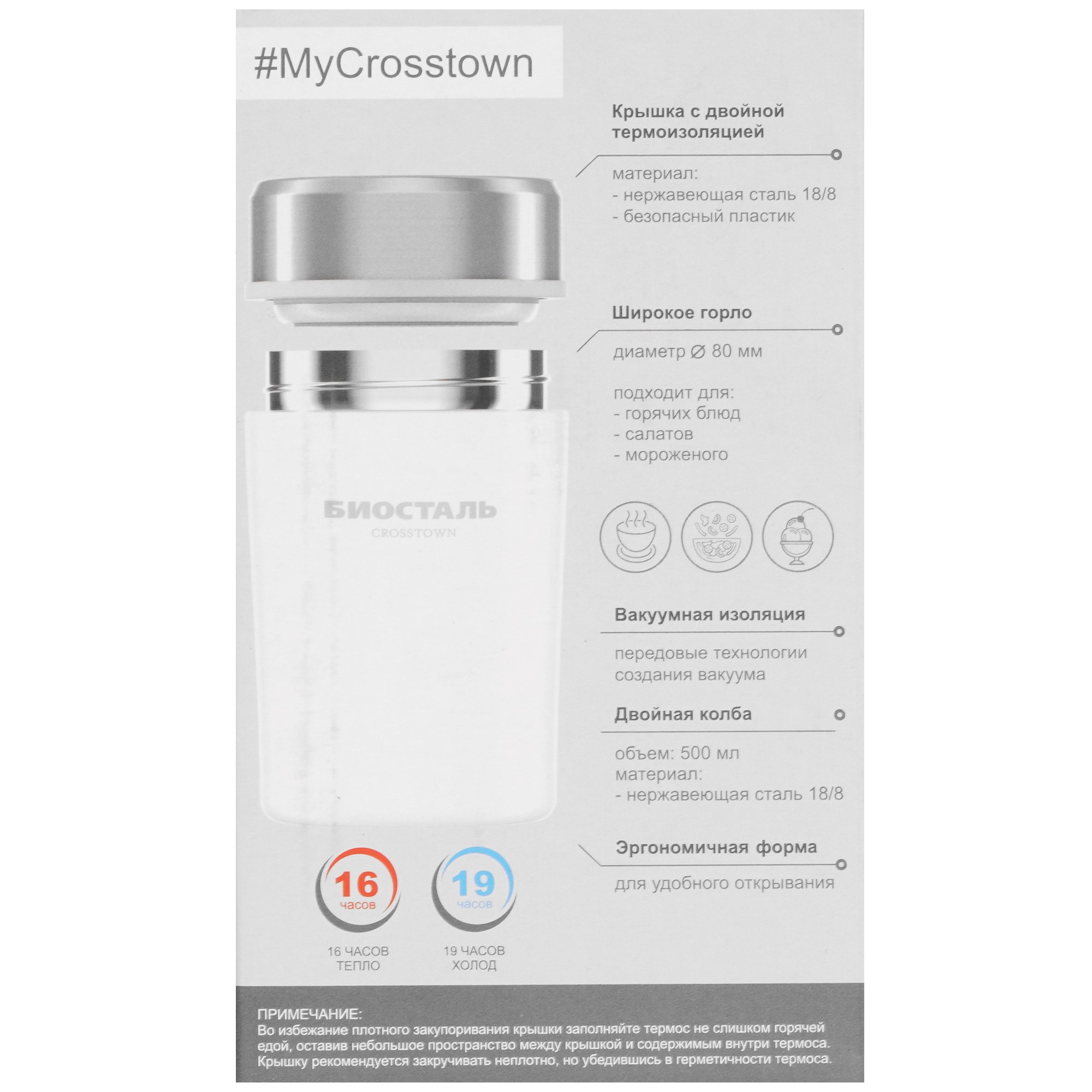 Термос "БИОСТАЛЬ-CROSSTOWN" с широкой горловиной, белый, 0,5 л.