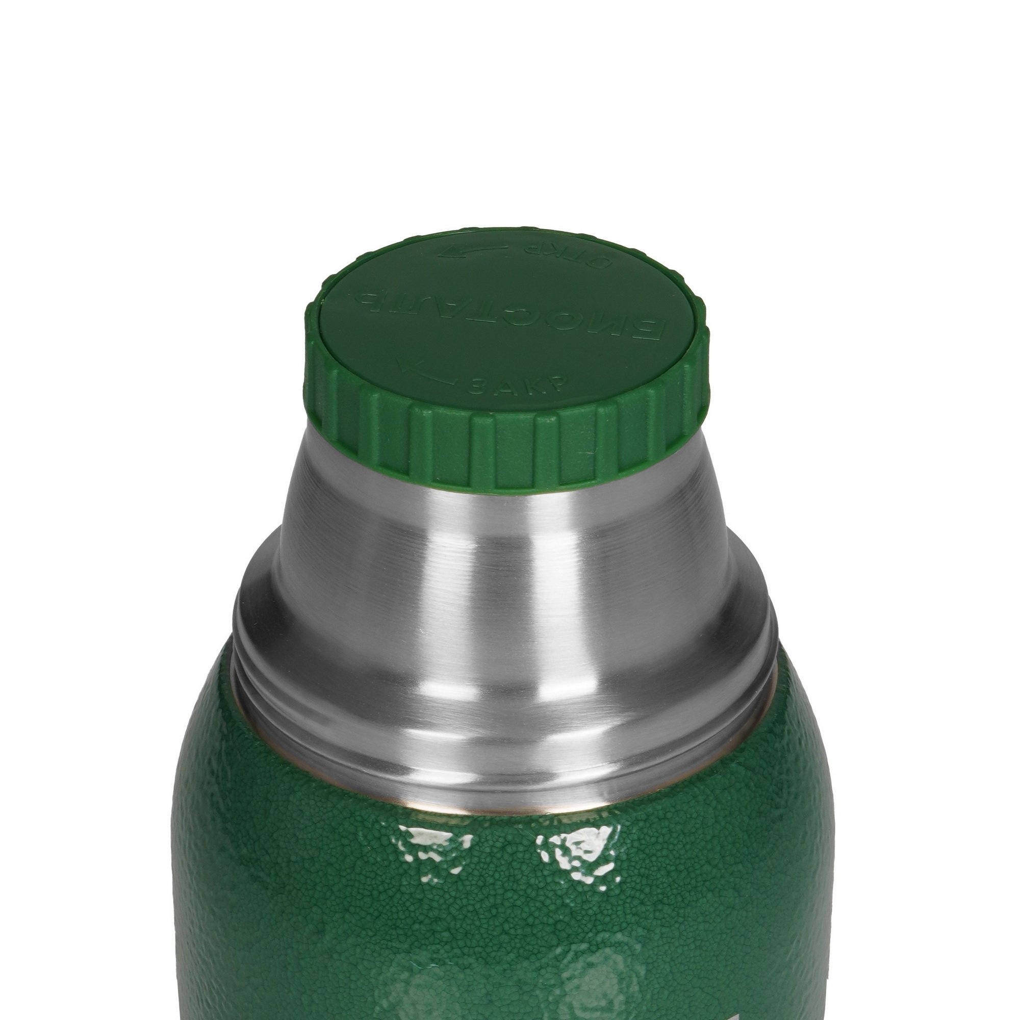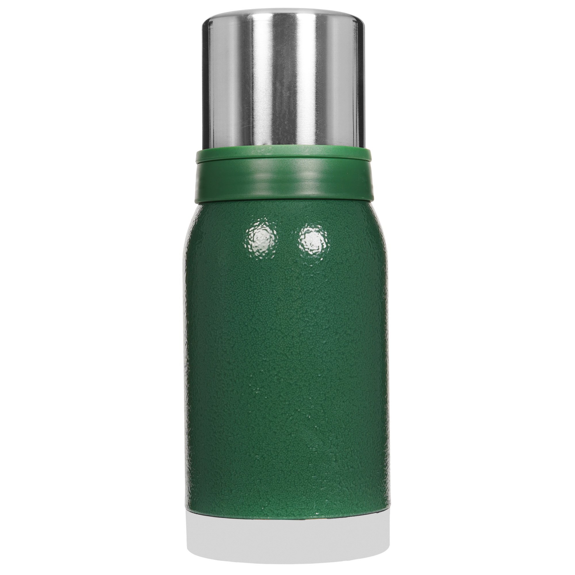 Термос с двумя металлическими чашками: крышкой-чашкой на 200 мл и дополнительной металлической чашкой на 150 мл. Пробка с функцией «термоконтроль» позволяет наливать напитки без полного откручивания пробки под любым углом. Термос изготовлен из высококачественной нержавеющей стали 18/8 (AISI 304). Корпус термоса покрыт защитной молотковой эмалью.