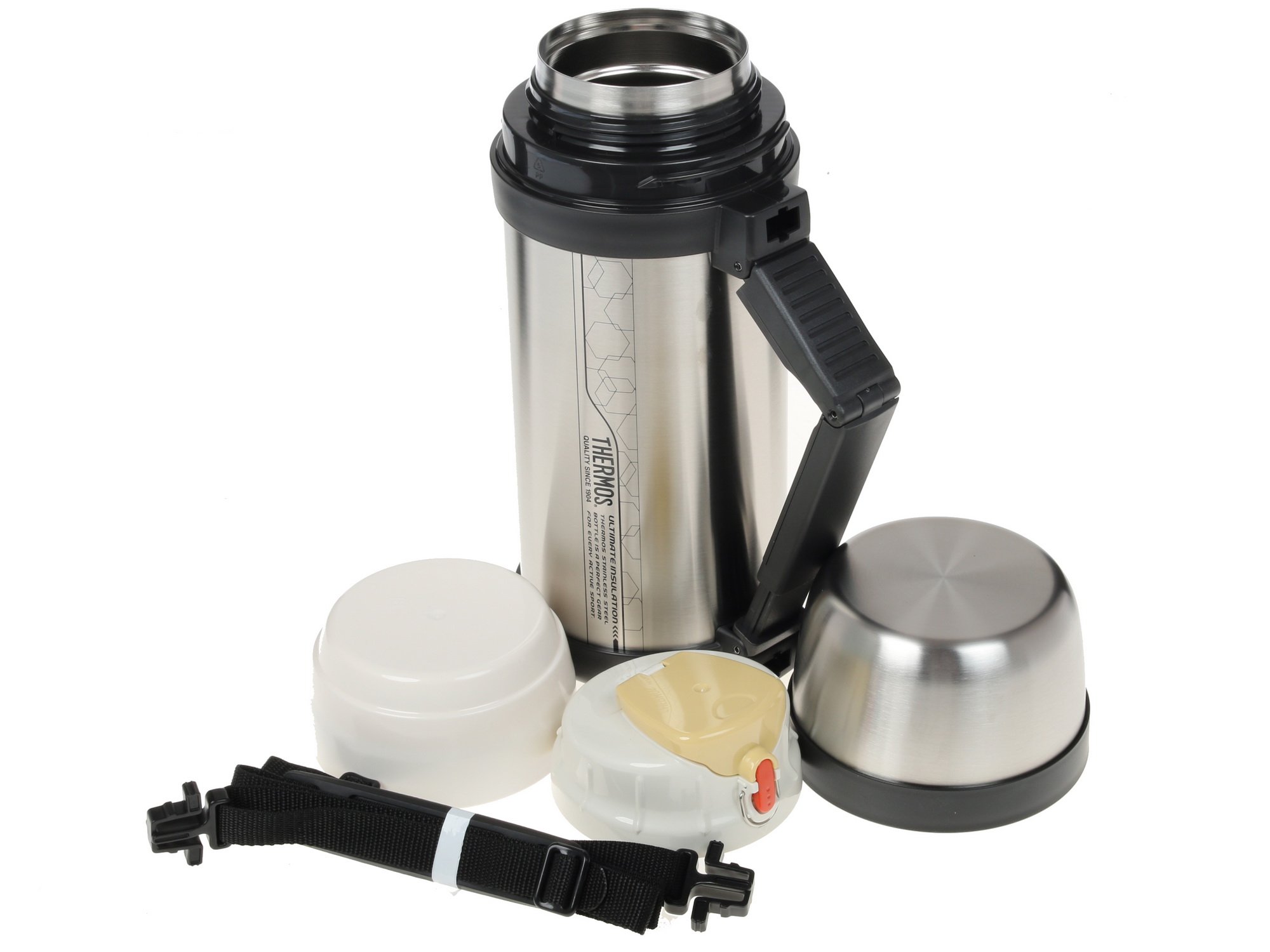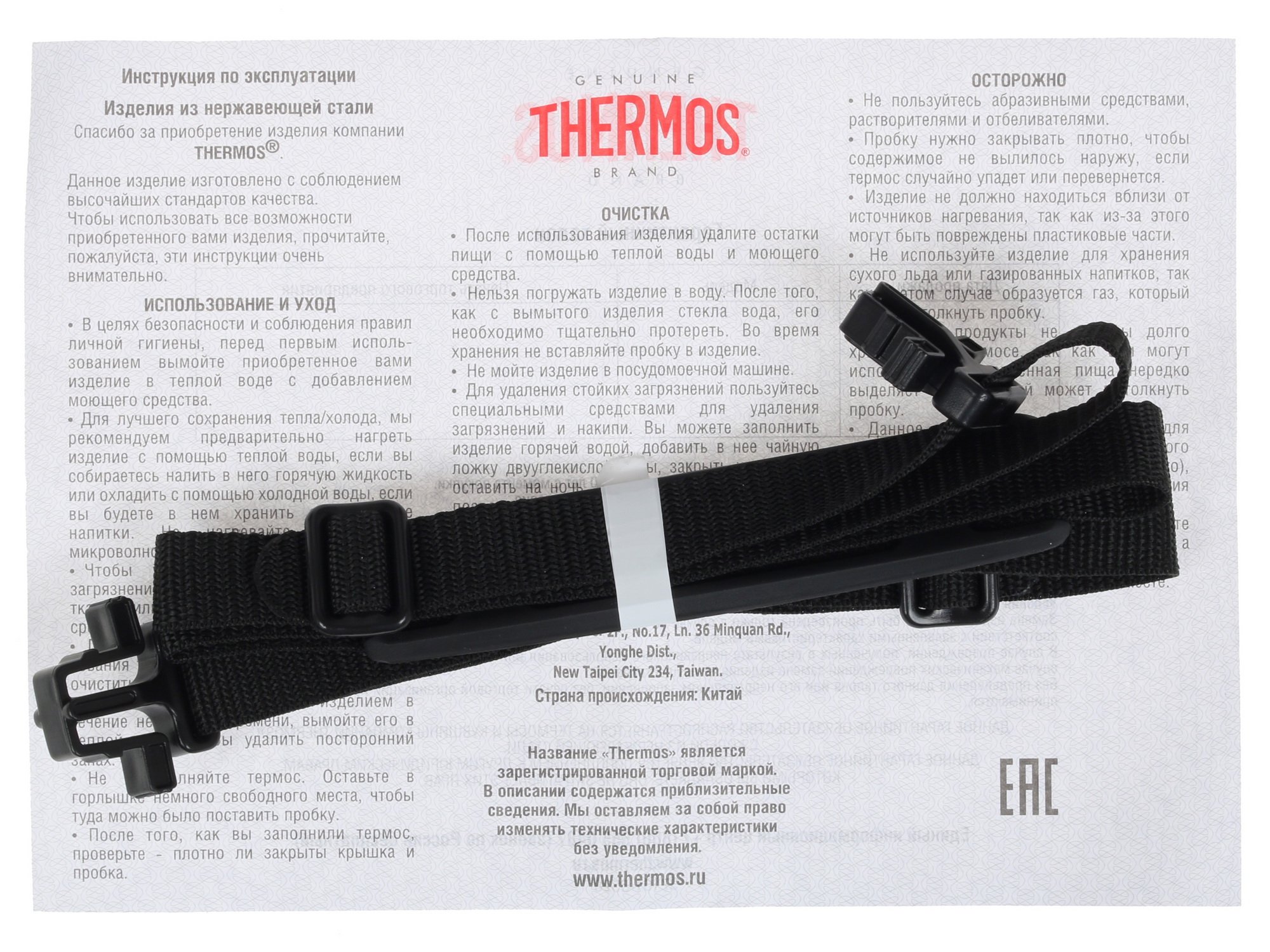 В комплекте с Thermos FDH-1650 SBK идет чашка на 350 и крышка-чашка на 400 мл. Пробка с откидной крышкой, поильником и небольшим сливным отверстием позволяем пить непосредственно из термоса. Его удобно брать с собой в длительные поездки, походы и на посменную работу.